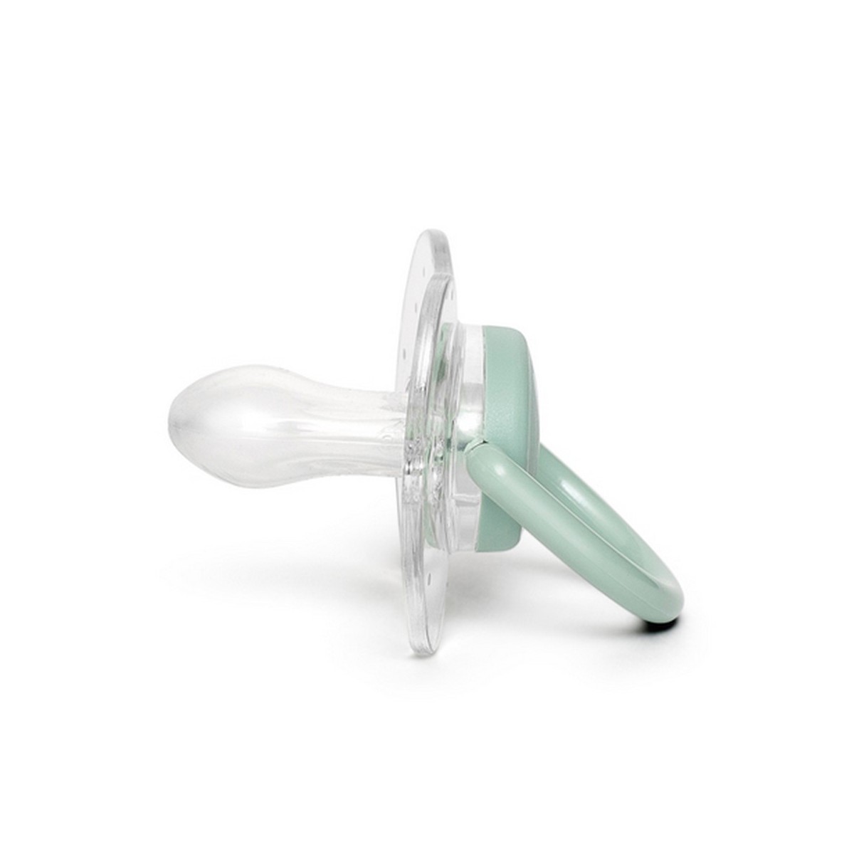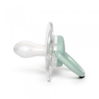 Chupete con tetina fisiológica de forma plana y simétrica. De esta forma queda siempre correctamente colocada en la boquita ejerciendo la mínima presión sobre el paladar.