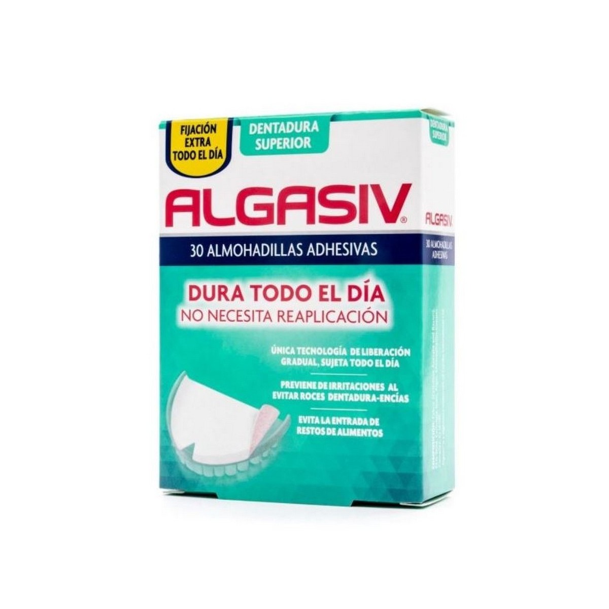 Los ingredientes exclusivos de las almohadillas ALGASIV liberan de manera gradual sus componentes adhesivos asegurando una sujección fuerte durante TODO el día. Además, la acción de la saliva mejora el poder de adhesión, ayudando a mantener la estabilidad de la dentadura postiza para un mayor confort.