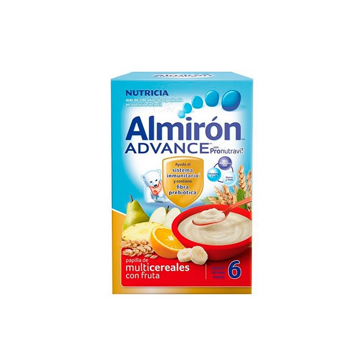 Papilla con multicereales con frutas que ayudan al sistema inmunitario y contiene fibra prebiótica gracias a Pronutravi2, que ayuda a la formación de células sanguíneas y contribuye al desarrollo cognitivo.