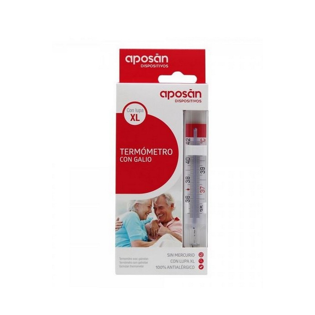 Este Termómetro de Galio de Aposán, ayuda a medir la fiebre. Está fabricado en vidrio con Galinstan y sin mercurio. No tóxico y ecológico. Cuenta con una lupa XL para poder leer la temperatura de una forma más sencilla. 100% antialérgico.