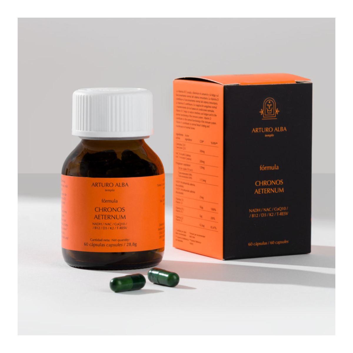 Coenzima Q10, NAC (N-Acetil L-Cisteína), cápsula (agente de recubrimiento: hidroxipropilmetilcelulosa), raíz de Polygonum cuspidatum (98% trans-resveratrol), antiaglomerante (sales magnésicas de ácidos grasos), agente de carga (celulosa microcristalina), menaquinona-7 (vitamina K2), NADH (Nicotinamida adenina dinucleótido), colecalciferol (vitamina D3), antiaglomerante (dióxido de silicio) y metilcobalamina (vitamina B12).