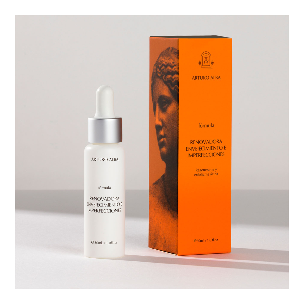 Sérum antiacné compuesto de una potente mezcla de alfa hidroxiácidos (AHA), urea, ácido dióico y salicílico; activos calmantes como la centella asiática y antiinfamatorios como la niacinamida y la cafeína. Altamente efcaz en casos de acné juvenil y adulto. Previene la aparición de pigmen- taciones asociadas. Excelente como tratamiento antiedad.