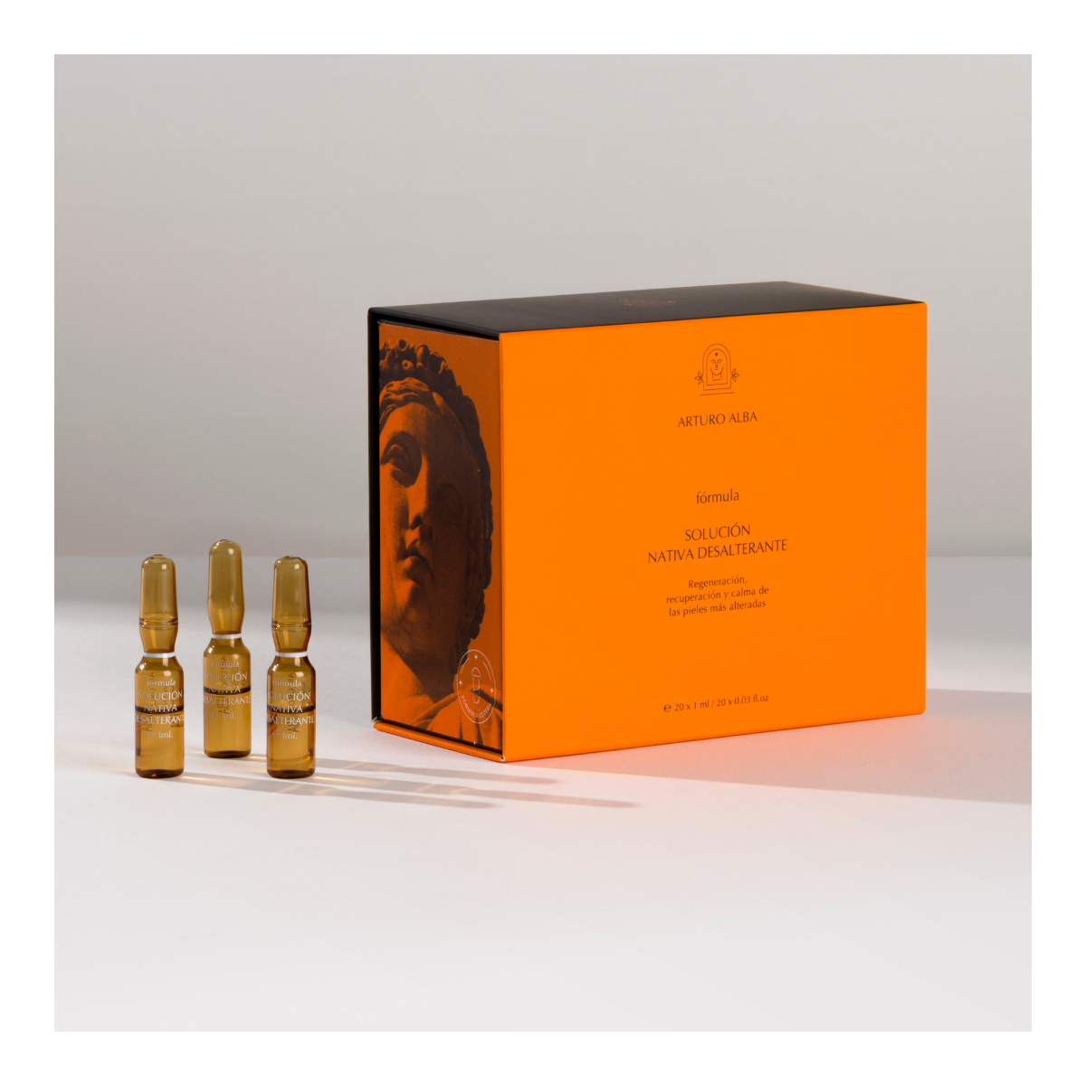 Solución nativa estéril que regenera, recupera, reestructura y calma las pieles más alteradas. Su estructura refuerza la función barrera y la matriz extracelular de las pieles con alteración extrema y aquellas pieles sometidas a tratamientos estéticos, médicos o cosméticos agresivos. Recuperación de las pieles con problemáticas que cursen con inflamación, descamación, picor y ardor.