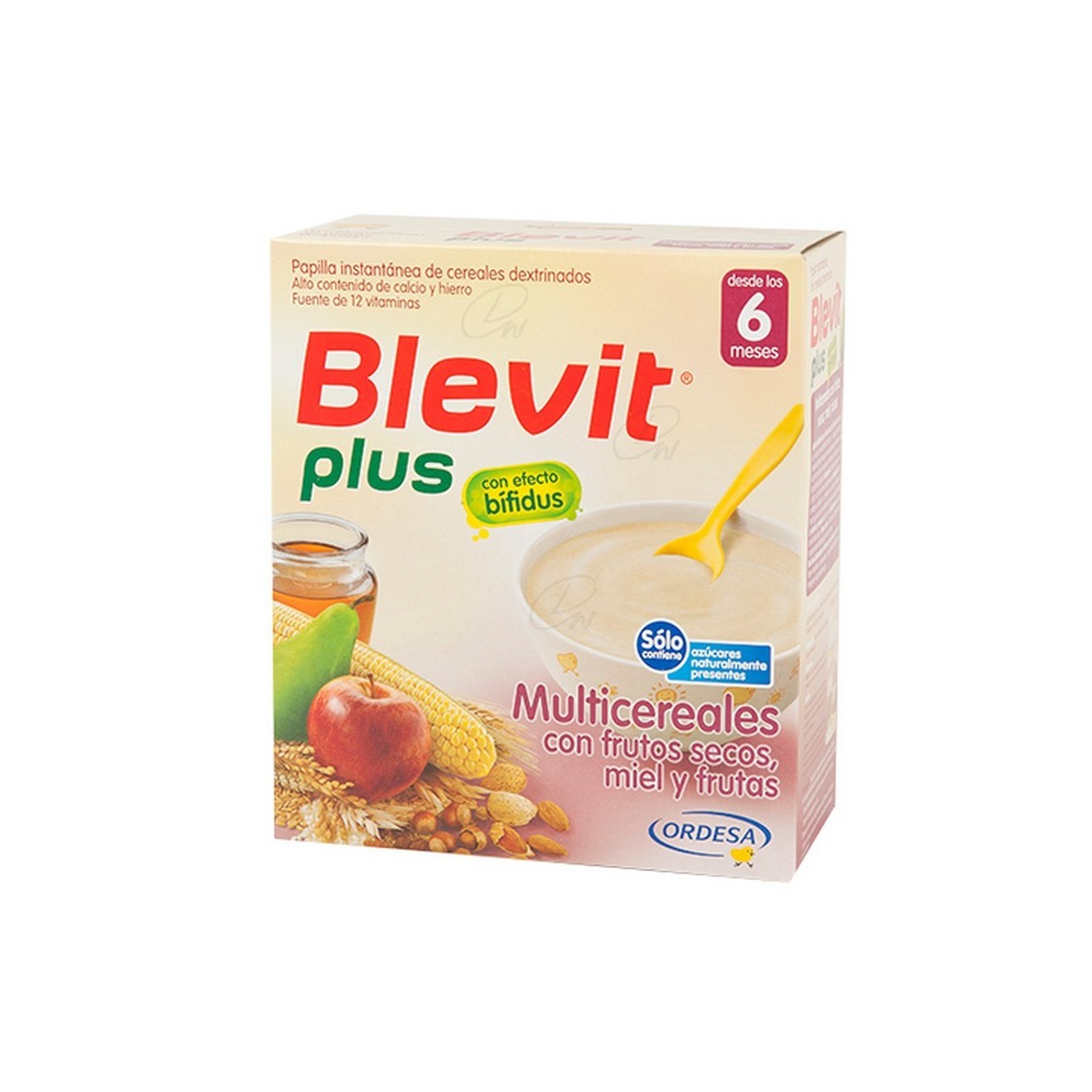 Harinas de cereales dextrinados 66% (trigo, trigo integral, arroz, cebada, centeno, maíz, avena), azúcar, frutas 8% (manzana, peras, pasas (zumo concentrado natural de uva, almidón de trigo, harina y lecitina de soja)), frutos secos 7% (almendra, avellana), miel 3%, maltosa, extracto de malta, dextrinomaltosa, sales minerales (calcio, hierro), complejo vitamínico (vitaminas: C, Nicotinamida, E, Pantotenato cálcico, B6, B2, B1, A, Ácido fólico, K, biotina, D, B12), aroma.