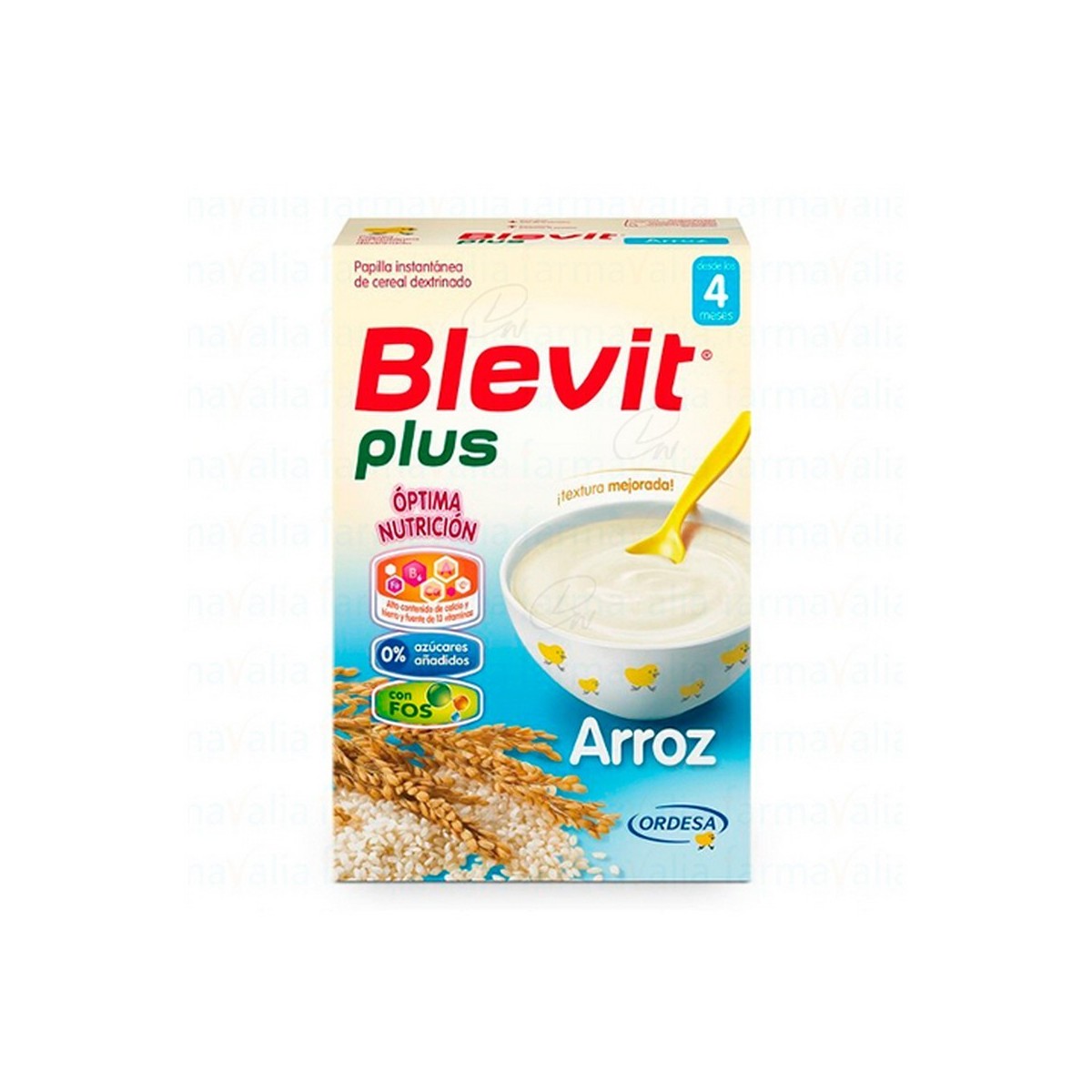 Harina de cereal dextrinado (94%) (arroz), fructooligosacáridos (3%), sales minerales (calcio, hierro), dextrinomaltosa, complejo vitamínico (vitaminas: C, nicotinamida, E, pantotenato cálcico, B6, B2, B1, A, ácido fólico, K, biotina, D, B12), aroma.