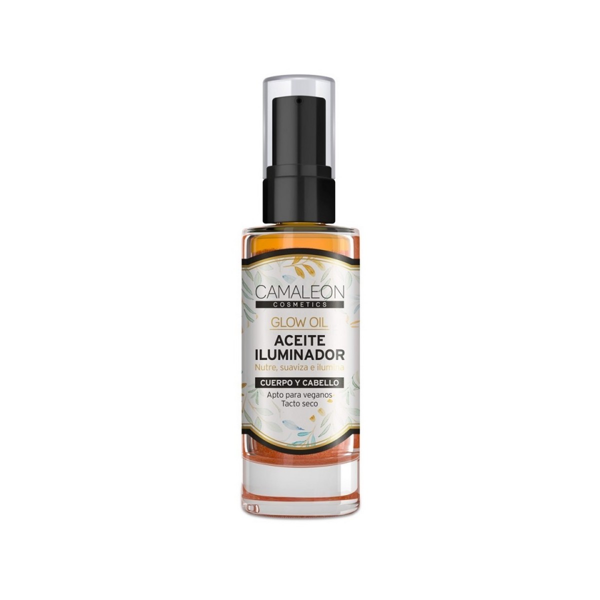 Aceite seco iluminador que nutre y suaviza la piel del cuerpo y el cabello. De rápida absorción, no engrasa y no mancha la ropa. Contiene diminutas partículas doradas que acentuan el bronceado y embellecen la piel proporcionado un brillo sutil y muy elegante.
