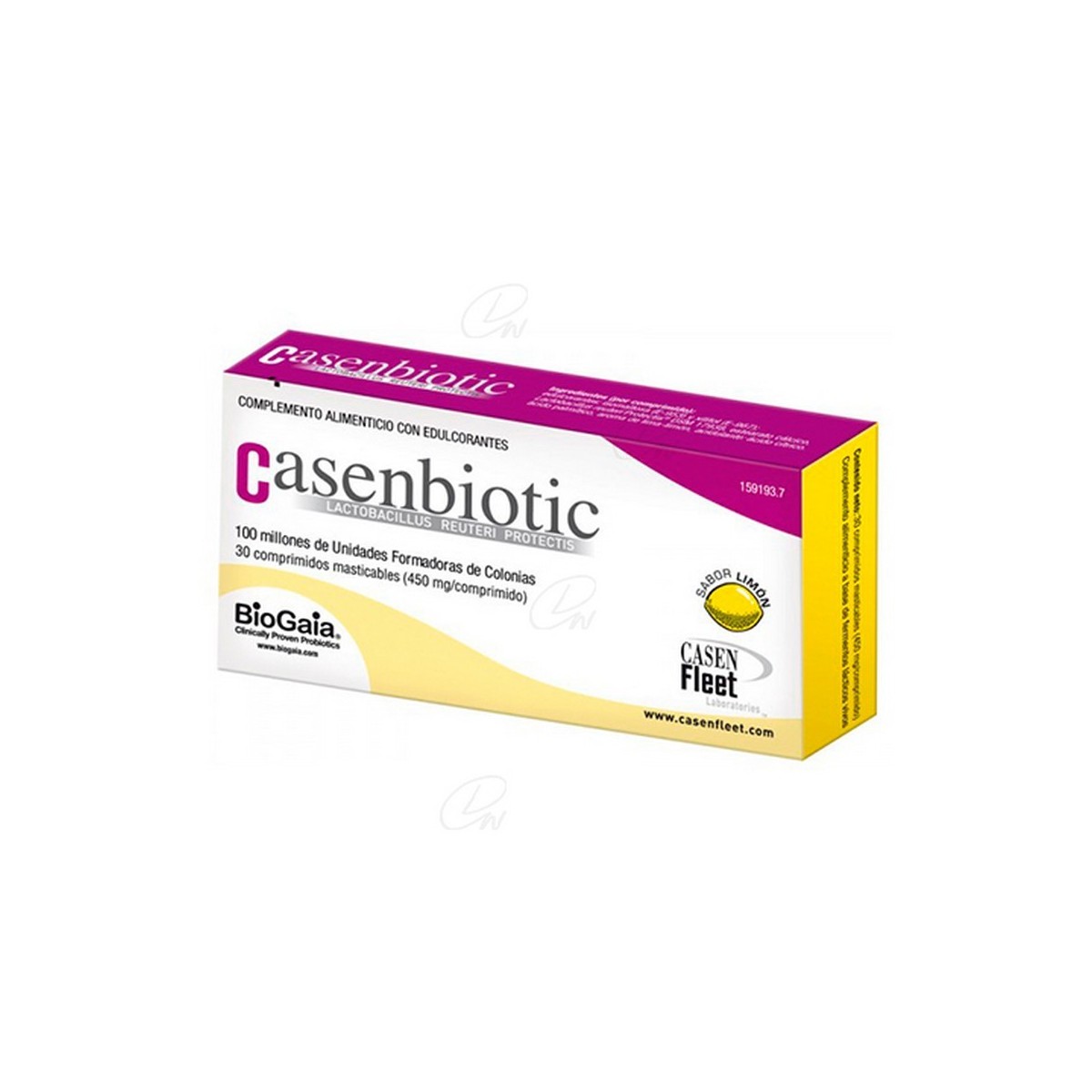 Fermentos lácticos lactobacillus reuteri (100 millones de unidades); edulcorantes: isomaltosa (E953), xilitol (E967), ácido cítrico y aroma de lima-limón.