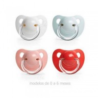 Su forma ergonómica armoniza con la carita del bebé y asegura una correcta presión al succionar. Con tetina anatómica que imita la forma del pezón materno durante la succión, adaptándose perfectamente al paladar.
