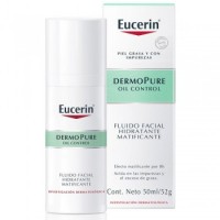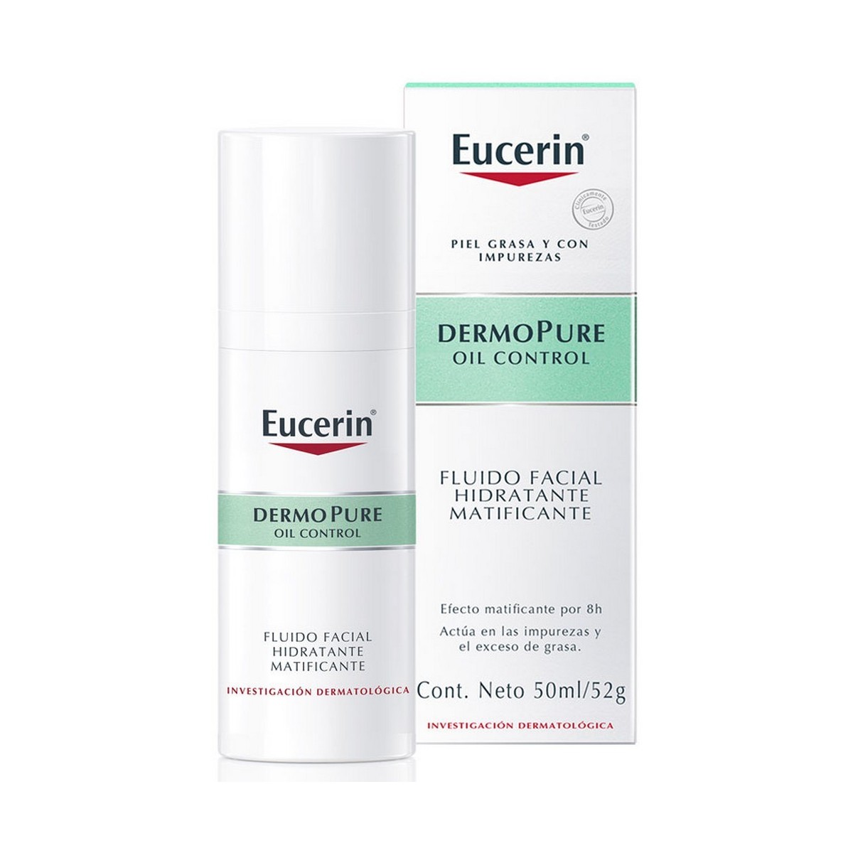 El innovador Eucerin DERMOPURE OIL CONTROL Fluido Facial Hidratante Matificante actúa con efectividad sobre los granos y los puntos negros, y ayuda a controlar esa piel difícil y propensa al acné y a sufrir imperfecciones. El fluido matificante contiene: