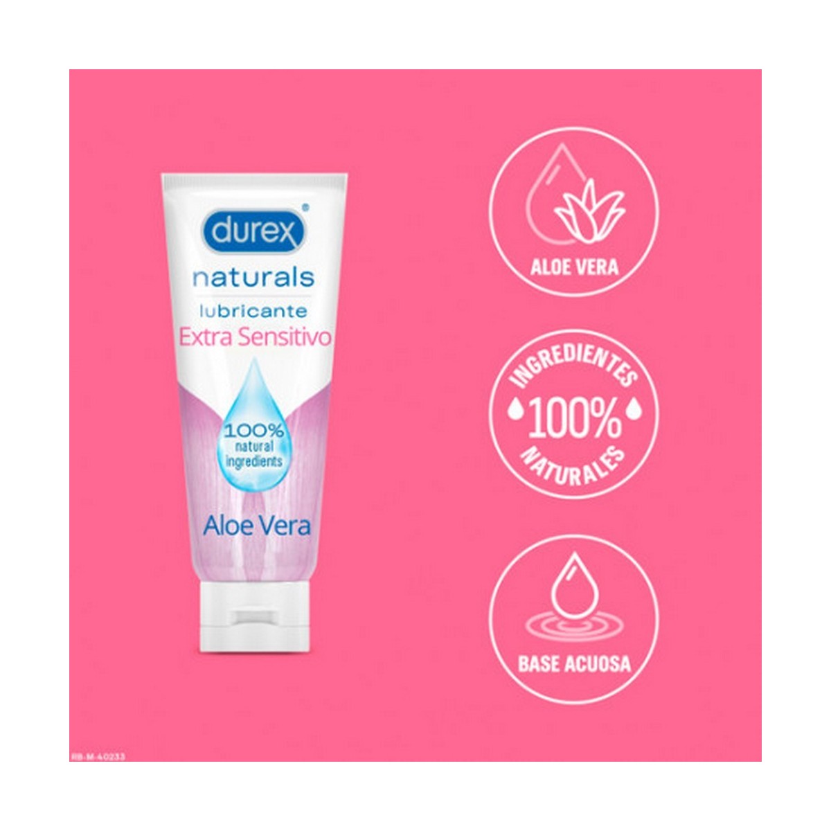 Durex Naturals Lubricante Extra Sensitivo Aloe Vera 100ml es un lubricante extra sensitivo hecho con ingredientes 100% naturales y Aloe Vera natural que aporta suavidad y ayuda a sentir el sexo suave de forma natural.