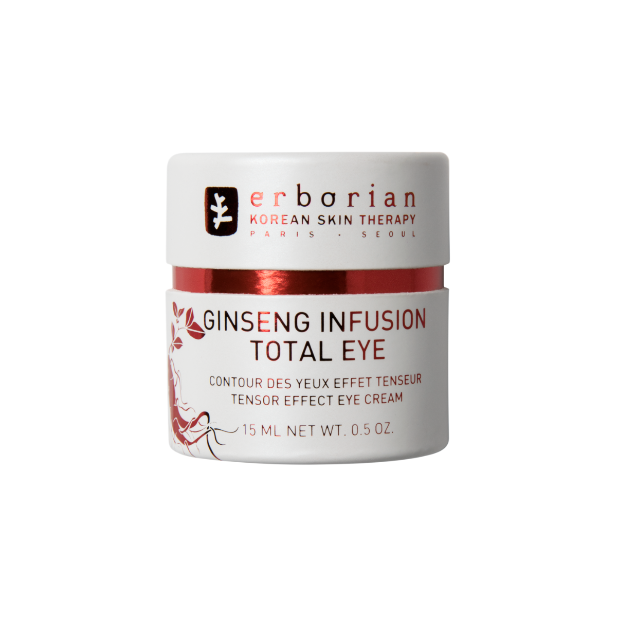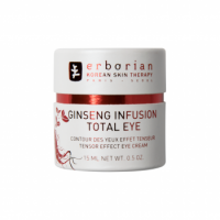 Enriquecida con extracto de Centella asiatica y Ginseng, la crema antiedad para contorno de ojos GINSENG INFUSION TOTAL EYE es la fórmula ideal para conseguir una mirada rejuvenecida.