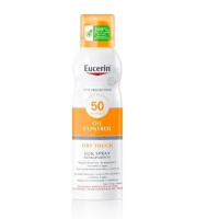 Eucerin Sun Spray Transparent Dry Touch Sensitive Protect FPS 50 es un protector solar corporal en spray apto para piel sensible, incluyendo la piel con tendencia acneica. La Advanced Spectral Technology combina filtros fotoestables y de amplio espectro frente a rayos UVA y UVB (1). Ofrece una protección alta contra los rayos UV con licocalcón A para neutralizar los radicales libres producidos por la luz UV y HEVL.