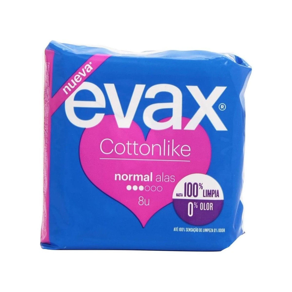 Prueba EVAX Cottonlike y no te vas a acordar de que las estás usando. Gracias al Sistema EVAX Cottonlike Dual con perlas activas que neutralizan el olor y un núcleo que captura el flujo al instante, EVAX te ofrece una absorción que te mantiene hasta 100% limpia y 0% sin rastro de olor. Sus alas mantienen la compresa en su sitio y la cobertura Cottonlike te ofrece un confort duradero.