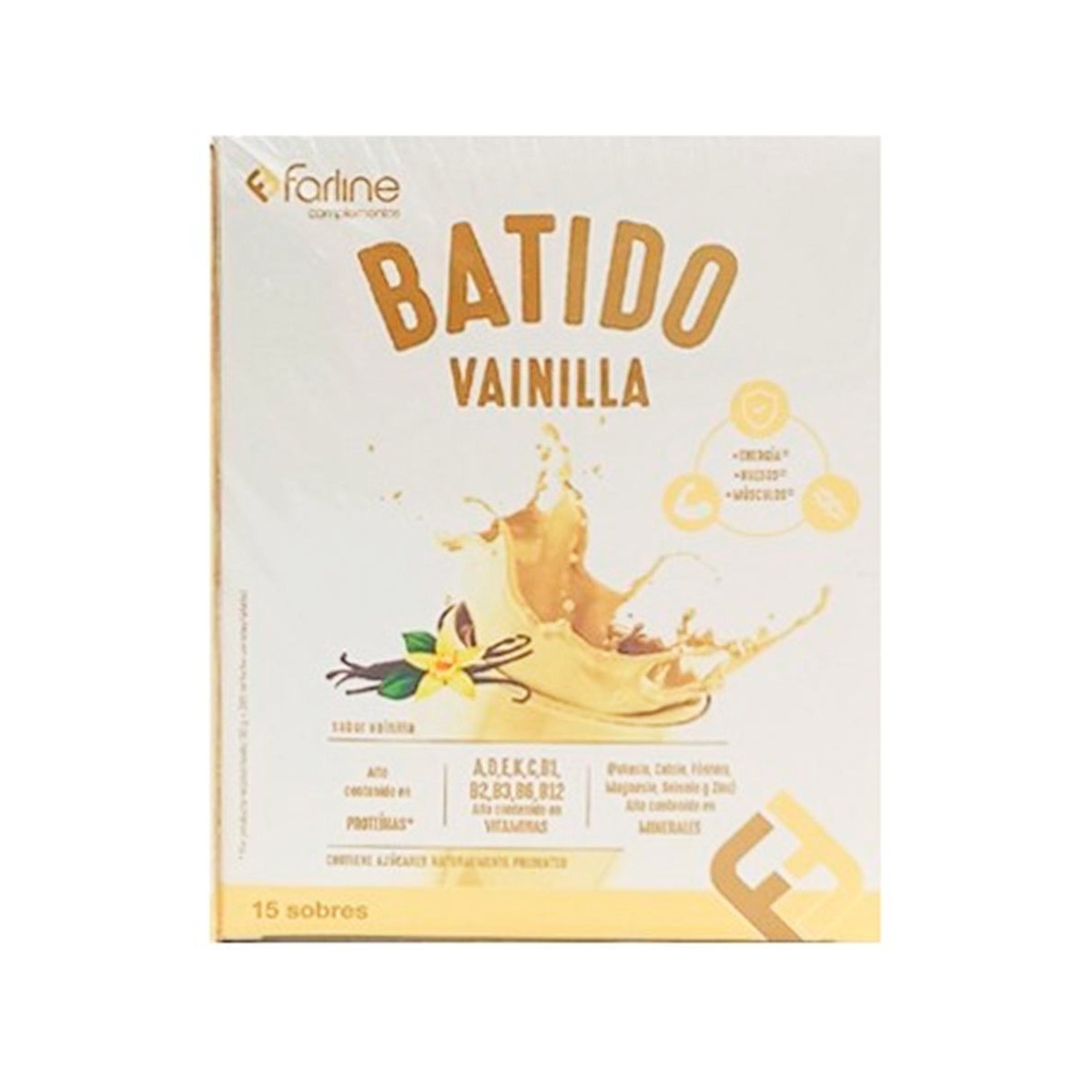 Farline Batido Vainilla 15 Sobres complemento alimenticio a base de proteínas lácteas enriquecido con vitaminas y minerales. Con edulcorantes.