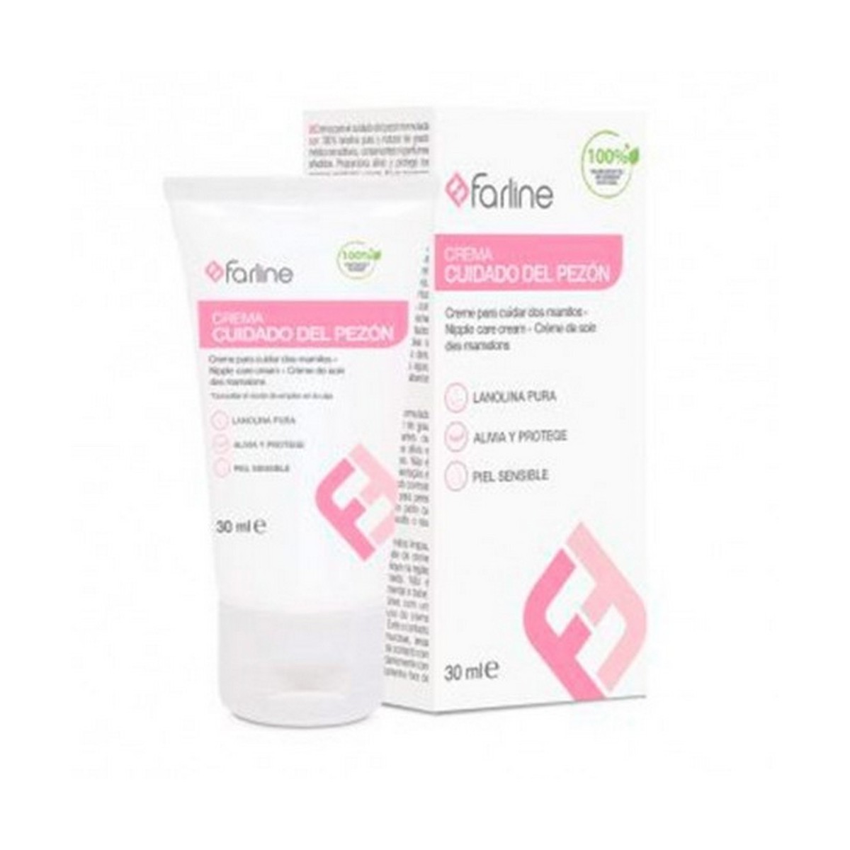 Farline Crema para el Cuidado del Pezón, ayuda al cuidado del pezón durante el periodo de lactancia. Está formulada con 100% lanolina pura y natural de grado médico, sin aditivos, conservantes ni perfumes añadidos. Proporciona alivio y protege los pezones agrietados y secos. No es necesario retirarla antes de dar el pecho, ya que es segura para los bebés.