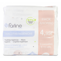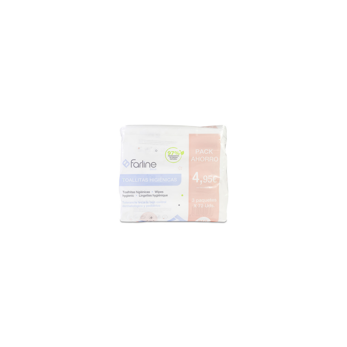 Pack Farline Toallitas Higiénicas Bebé aporta la máxima suavidad mientras limpia de manera delicada a la vez que respeta la piel del bebé.