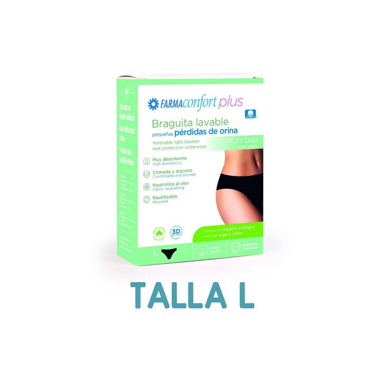 FARMACONFORT BRAGUITA LAVABLE CINTURA BAJA PEQUEÑAS PÉRDIDAS DE ORINA TALLA L