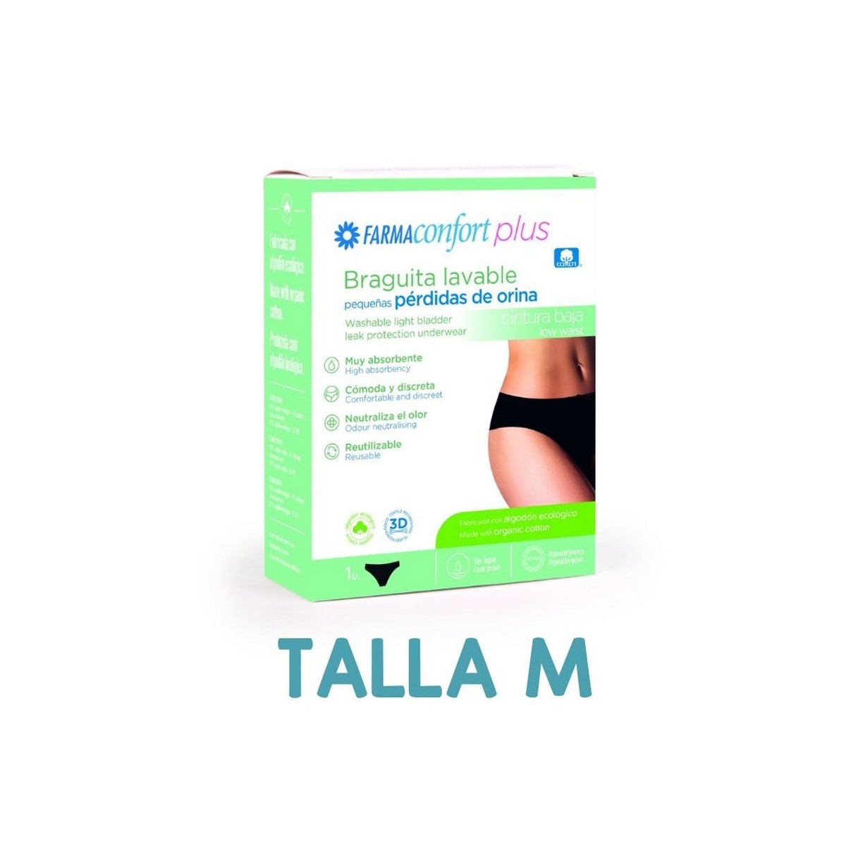 FARMACONFORT BRAGUITA LAVABLE CINTURA BAJA PEQUEÑAS PÉRDIDAS DE ORINA TALLA M