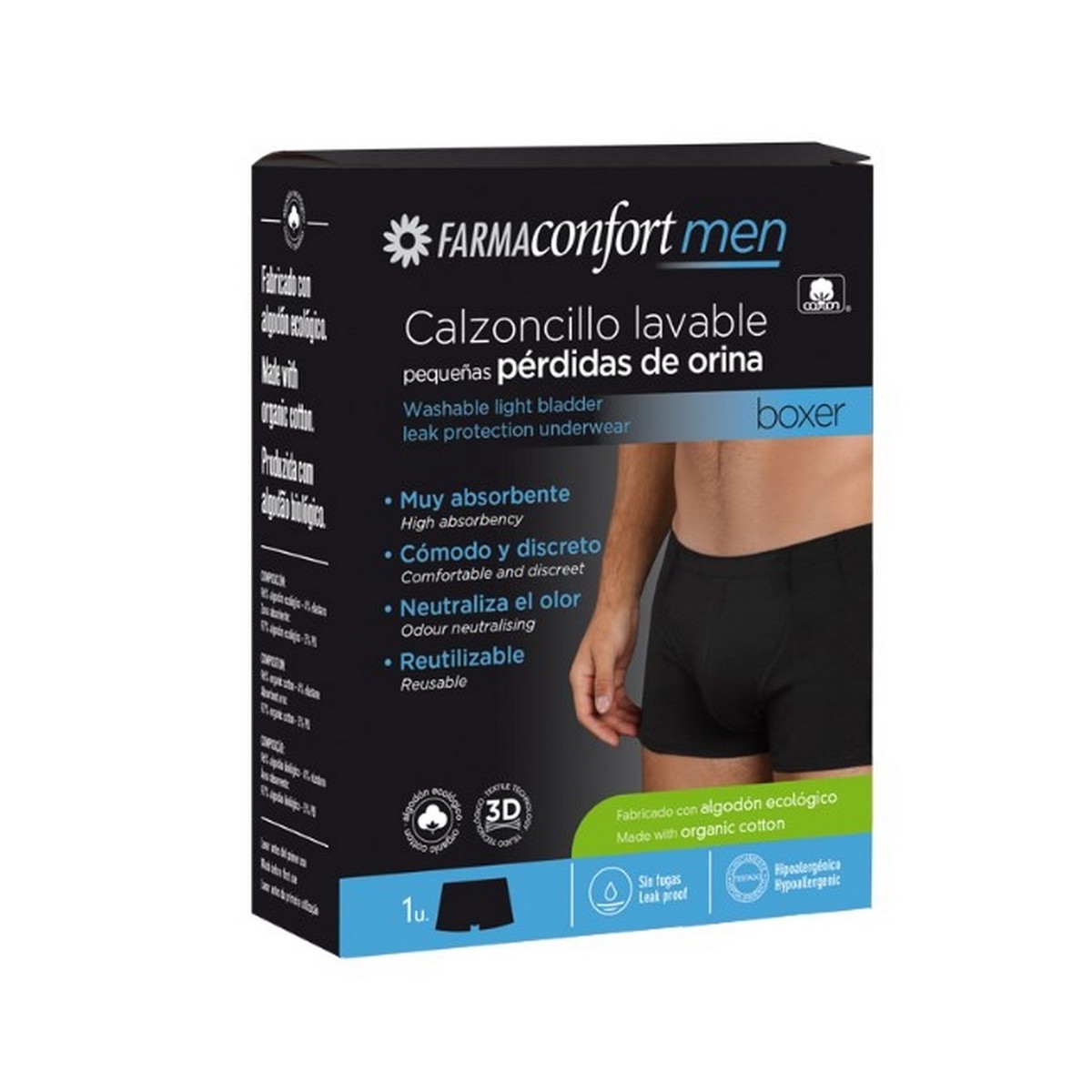 El calzoncillo boxer para pequeñas pérdidas de orina está elaborado con algodón ecológico certificado.