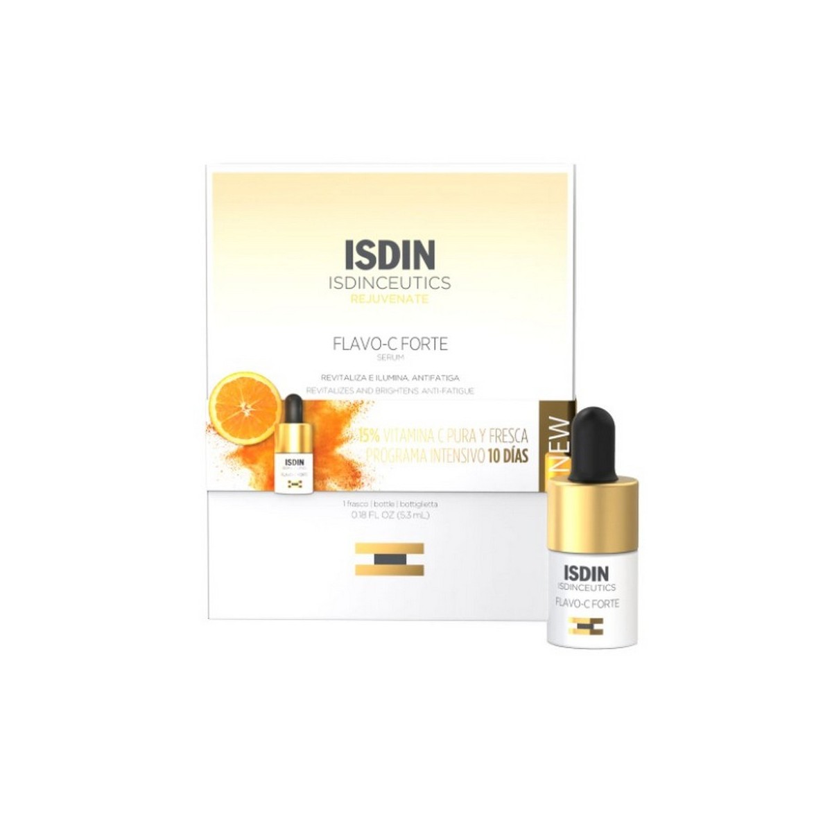 Flavo-C Forte es un potente sérum facial intensivo con un 15% de vitamina C pura y fresca que revitaliza, ilumina y ayuda a disminuir los signos de fatiga de la piel. Además, aumenta la producción de colágeno, aporta firmeza y ayuda a reducir las arrugas en solo 10 días, protegiendo la piel del estrés oxidativo y la polución.