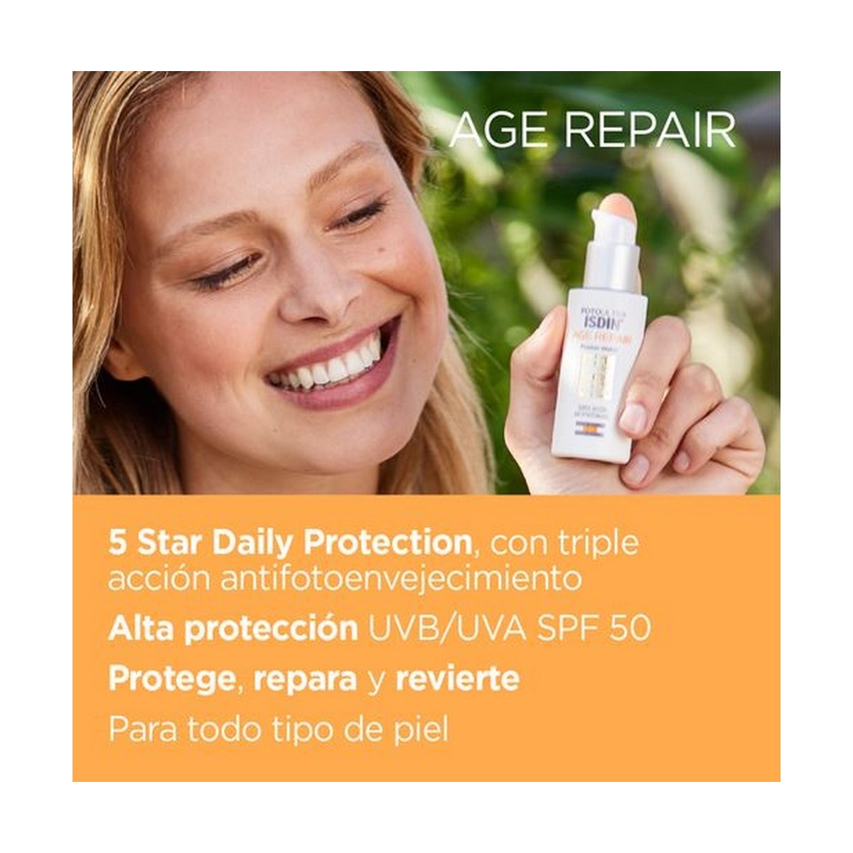 Triple acción Anti Fotoenvejecimiento: Protege del daño solar con una alta protección UVB/UVA SPF 50, repara el daño acumulado a nivel celular gracias a los DNA Repairsomes®, y revierte los signos visibles del fotoenvejecimiento gracias a el Li-Q10, CollagenBooster Peptide y ácido hialurónico.