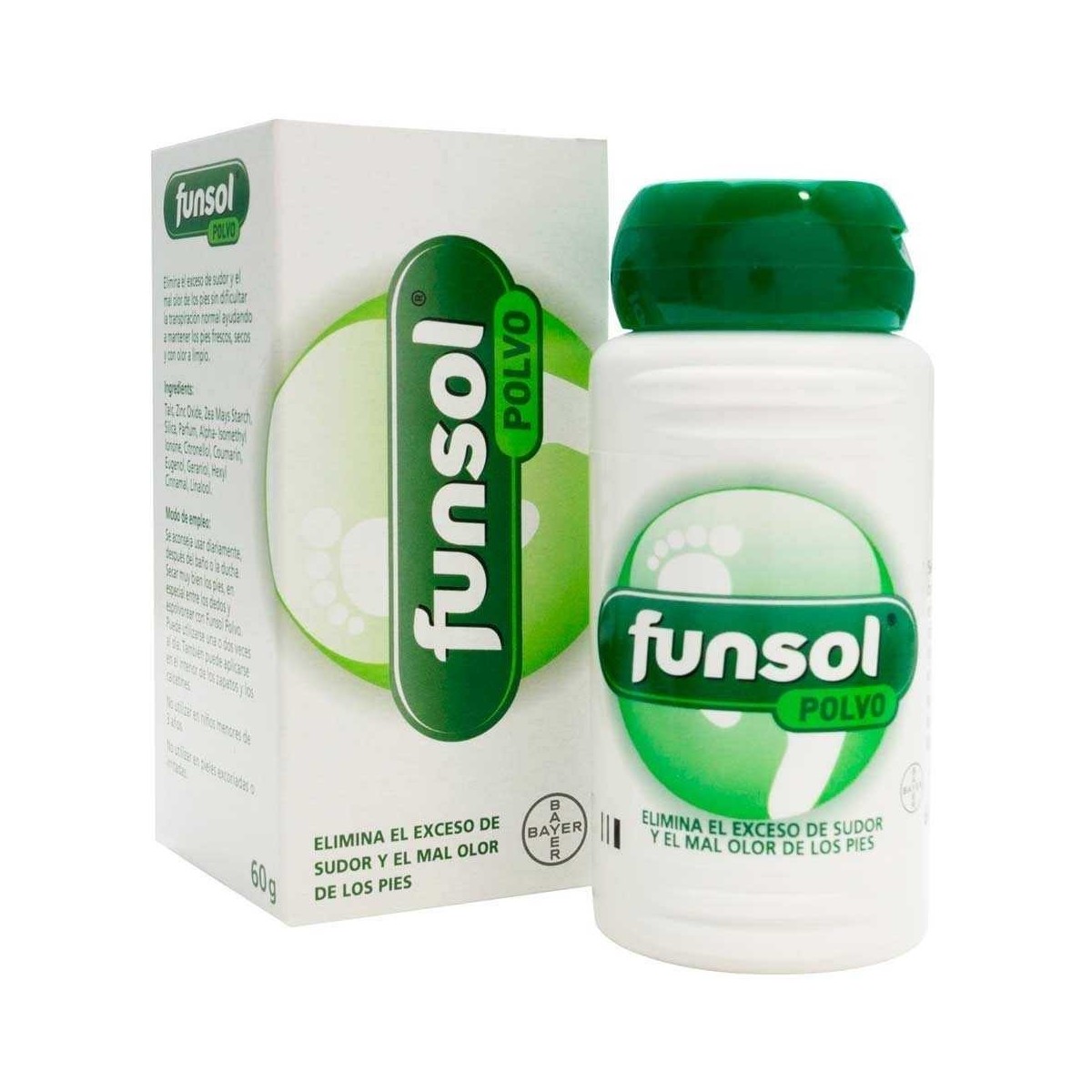 Funsol Polvo, gracias a sus ingredientes activos, elimina el exceso de sudor y el mal olor de los pies creando un medio adverso para la proliferación de microorganismos causantes del mal olor.
