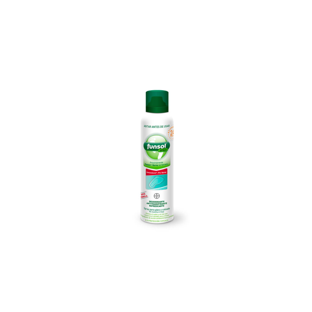 Funsol Spray regula el exceso de sudor y elimina el mal olor, sin impedir la total transpiración, ayudando a mantener los pies frescos, secos y con olor a limpio durante todo el día.
