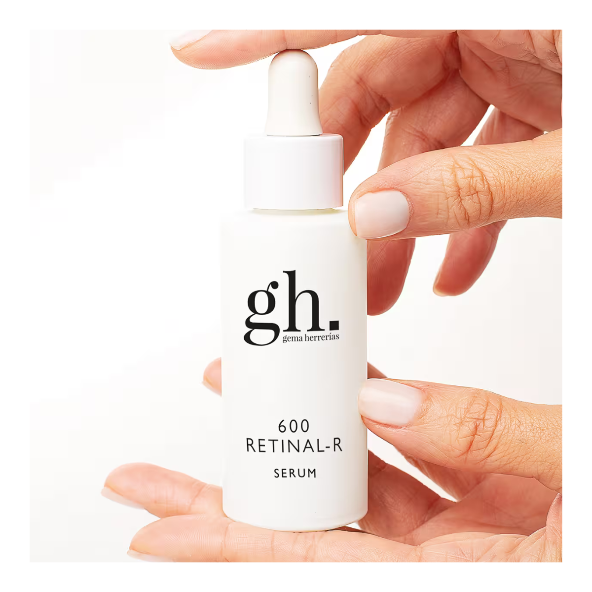 Sérum facial formulado con retinaldehído, sodium retinoyl hyaluronate, un complejo de pre/postbiótico, pantenol y bisabolol.
