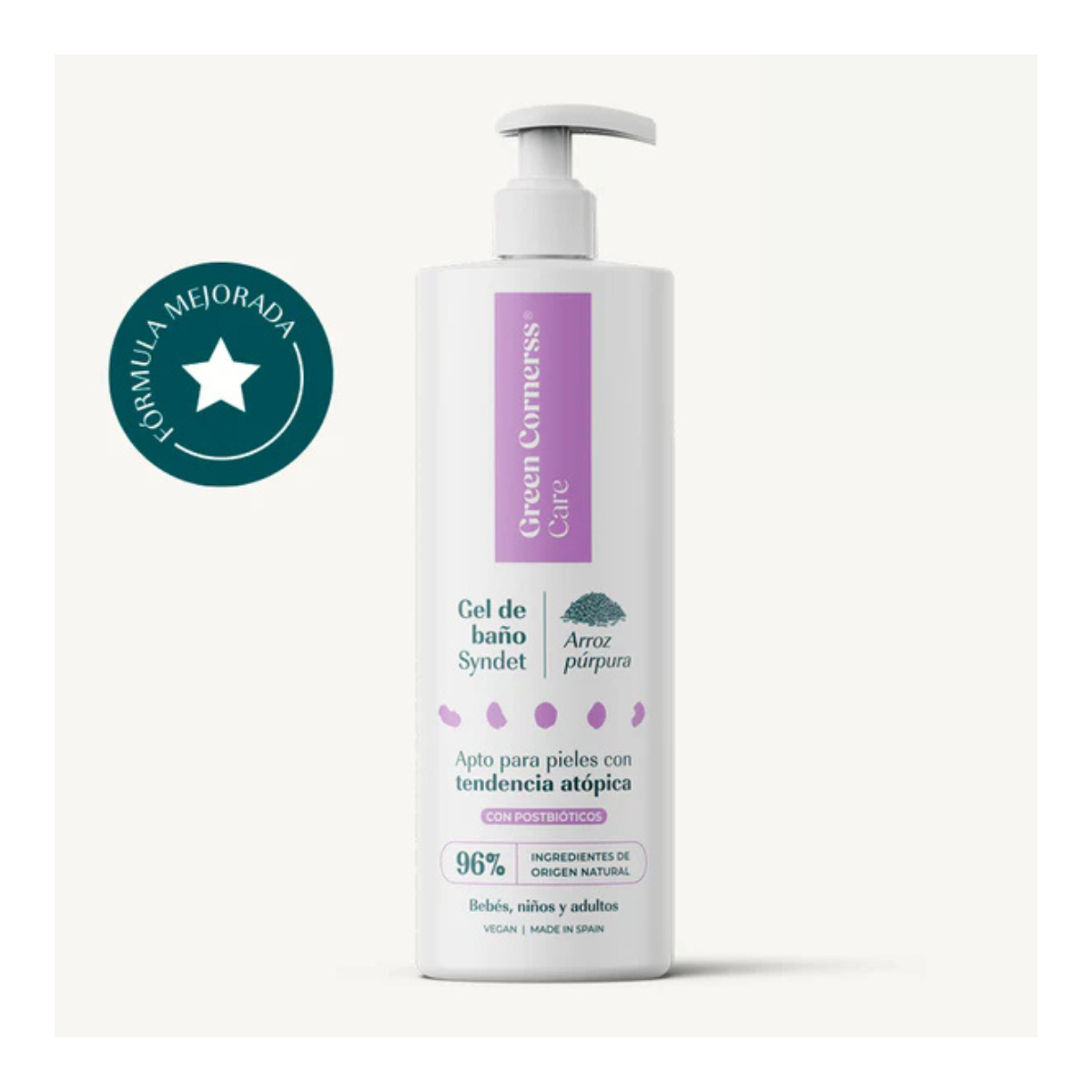 Gel de baño Syndet (comúnmente llamado "jabón sin jabón"), respetuoso y saludable con la limpieza diaria de la piel de toda la familia. Apto para personas con dermatitis atópica.