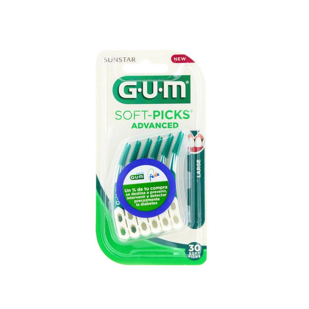 Gum Soft-Picks Advanced, para una limpieza eficaz entre los dientes. Penetra fácilmente entre los espacios interdentales eliminando la placa y los restos de alimentos. Úselo en cualquier momento y lugar. No contiene látex, madera, ni metal.