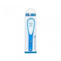 Limpiador lingual para eliminar por arrastre la placa bacteriana acumulada en esta parte de la cavidad bucal.