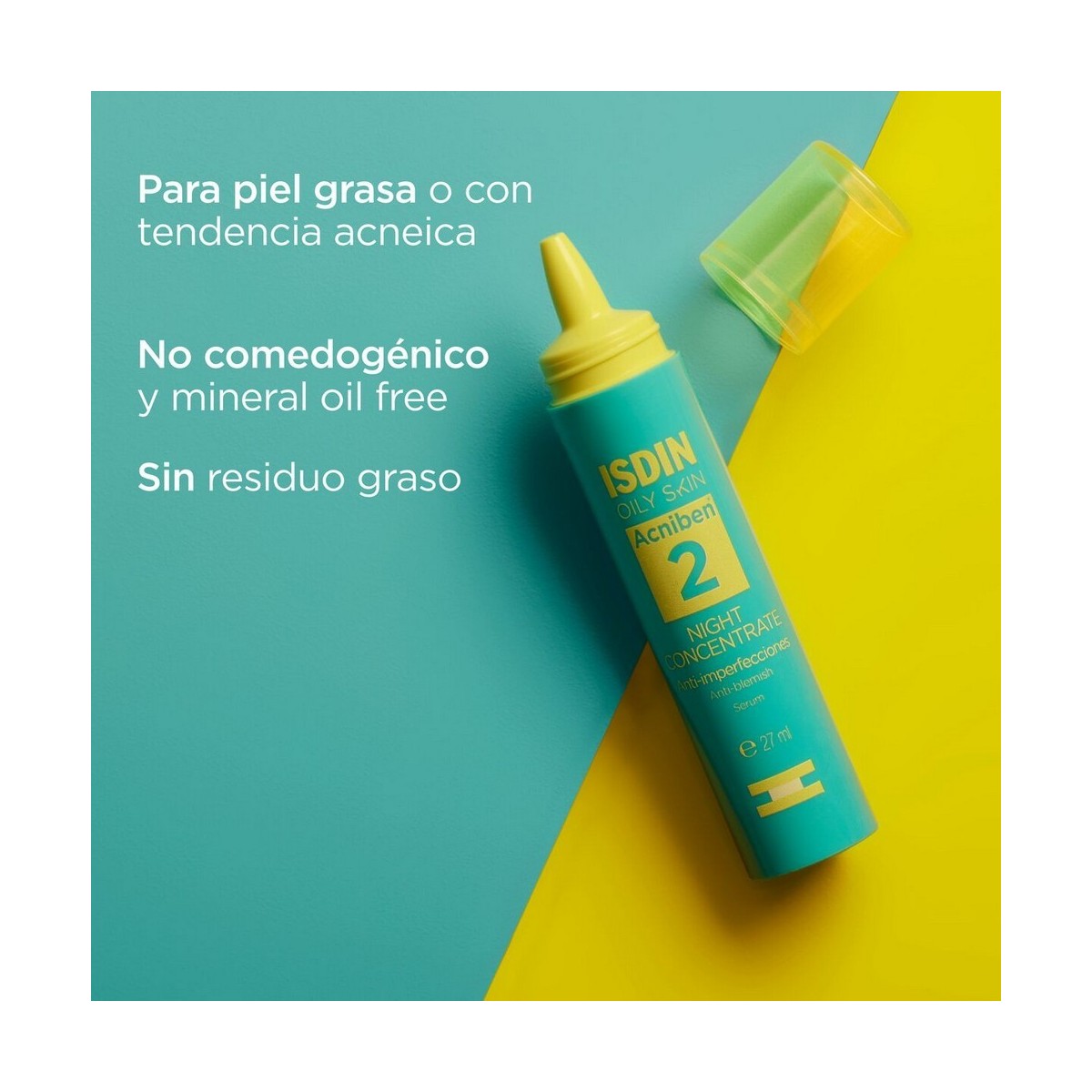 1 Evaluación subjetiva de la aceptabilidad y eficacia de Acniben Night Concentrate en 34 sujetos con piel con tendencia acnéica leve y moderada, aplicando el producto una vez al día por la noche durante 84 días. 2 Evaluación clínica de un producto cosmético facial utilizado por 30 sujetos adolescentes y adultos con piel facial con tendencia acneica leve a moderada durante 12 semanas bajo control dermatológico.