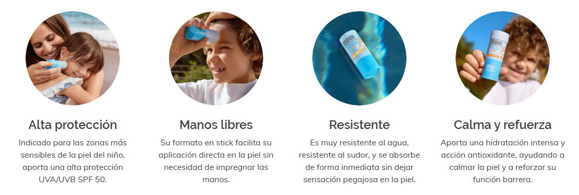 Protege las zonas más sensibles y expuestas de la delicada piel del niño con Pediatrics Stick SPF 50, el protector solar en stick muy resistente al agua y resistente al sudor que se aplica cómodamente y se absorbe de forma inmediata. Aporta una hidratación intensa, acción antioxidante y refuerza la función barrera.