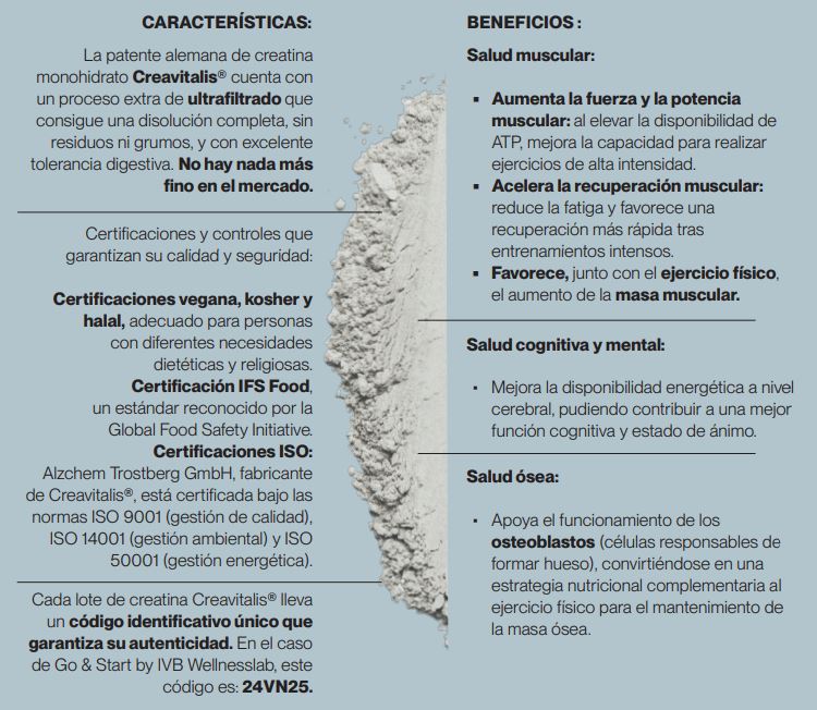 Complemento alimenticio a base de creatina monohidrato ultrafiltrada Creavitalis®, elaborada por la prestigiosa empresa alemana Alzchem Trostberg GmbH.