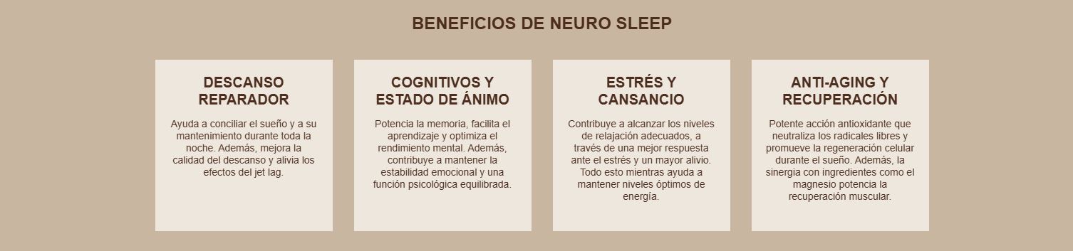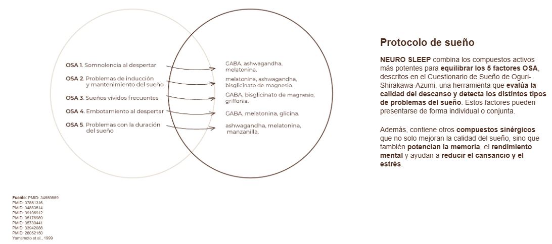NEURO SLEEP es el primer protocolo del mercado que combina los 13 compuestos activos más importantes para abordar los problemas del sueño, estrés, foco cognitivo y anti-aging de una manera única dispuestos en un formato cápsula y vial.