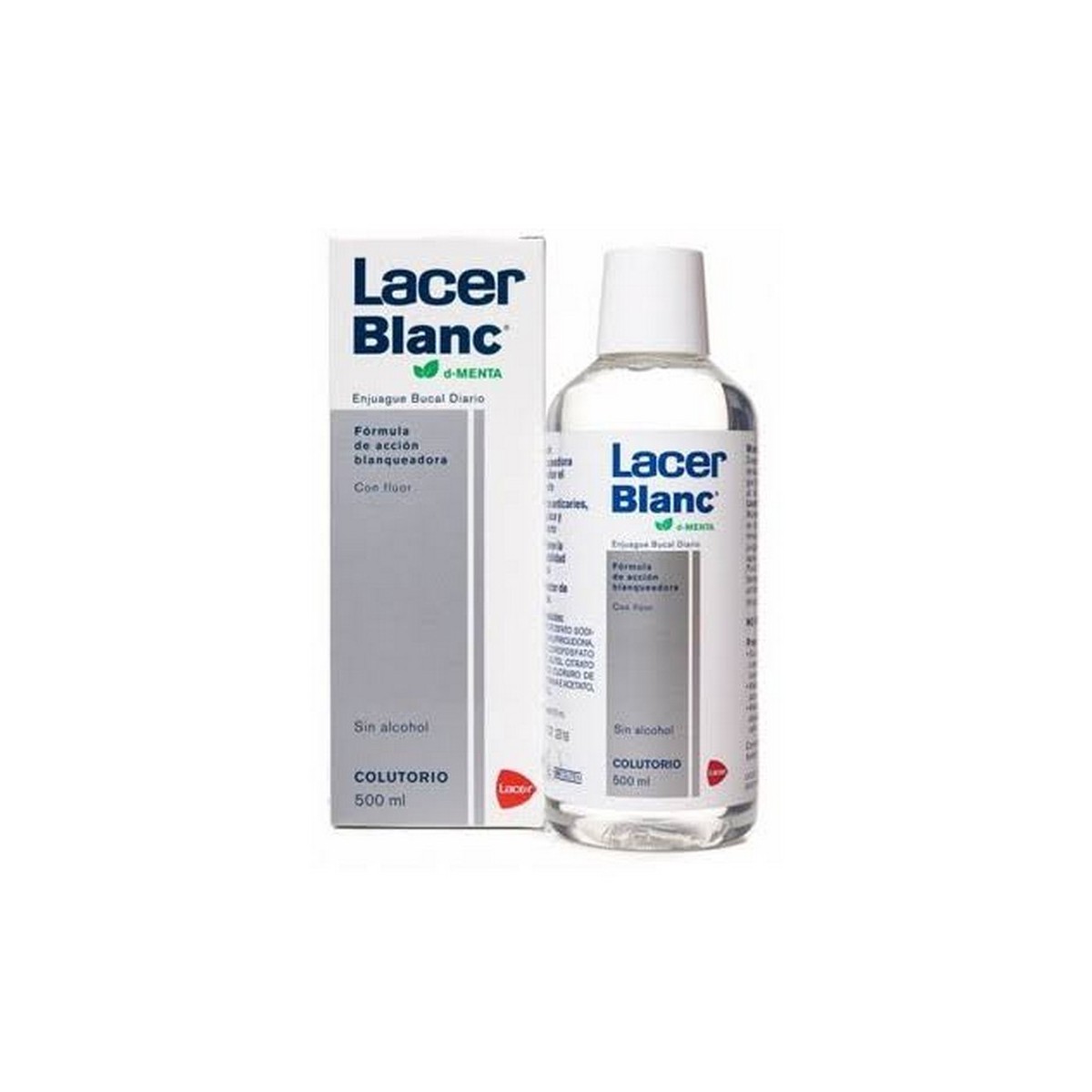 Lacer Blanc Colutorio menta es un enjuague bucal de uso diario que devuelve a los dientes el color natural, el brillo y la suavidad sin dañar el esmalte. Sabor menta.