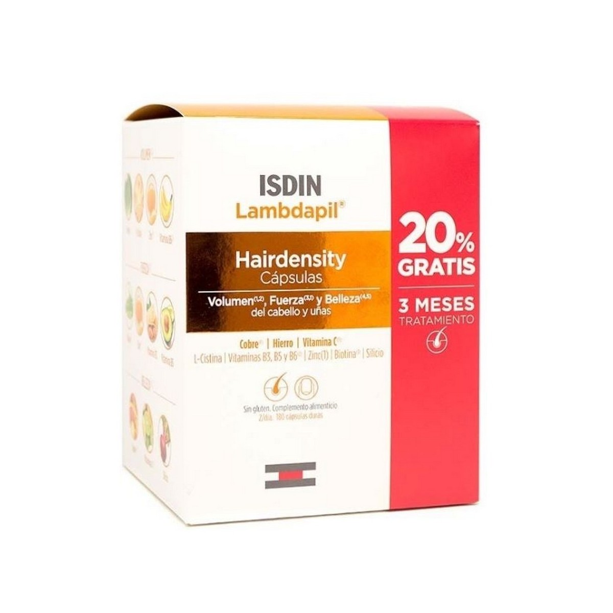 - DAR FORTALEZA: Hairdensity Isdin contribuye al mantenimiento del cabello por su contenido en Biotina. Además favorece el mantenimiento de las uñas por su contenido en Zinc.