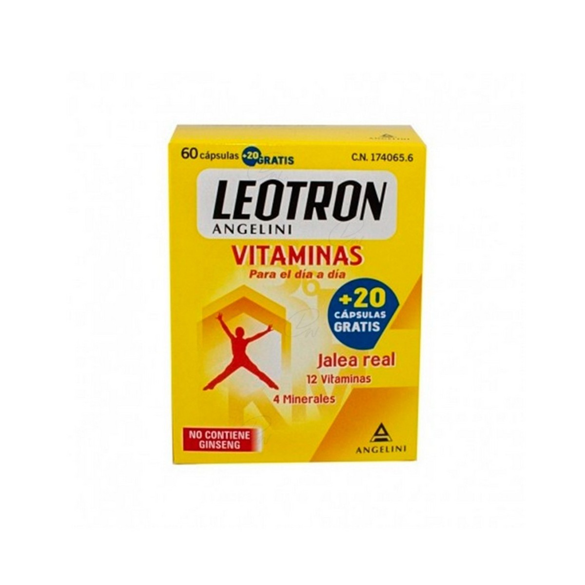 Leotron Vitaminas es un complemento alimenticio con Jalea real, 12 Vitaminas y 4 Minerales. No contiene ginseng. Sin gluten. Sin azúcares.