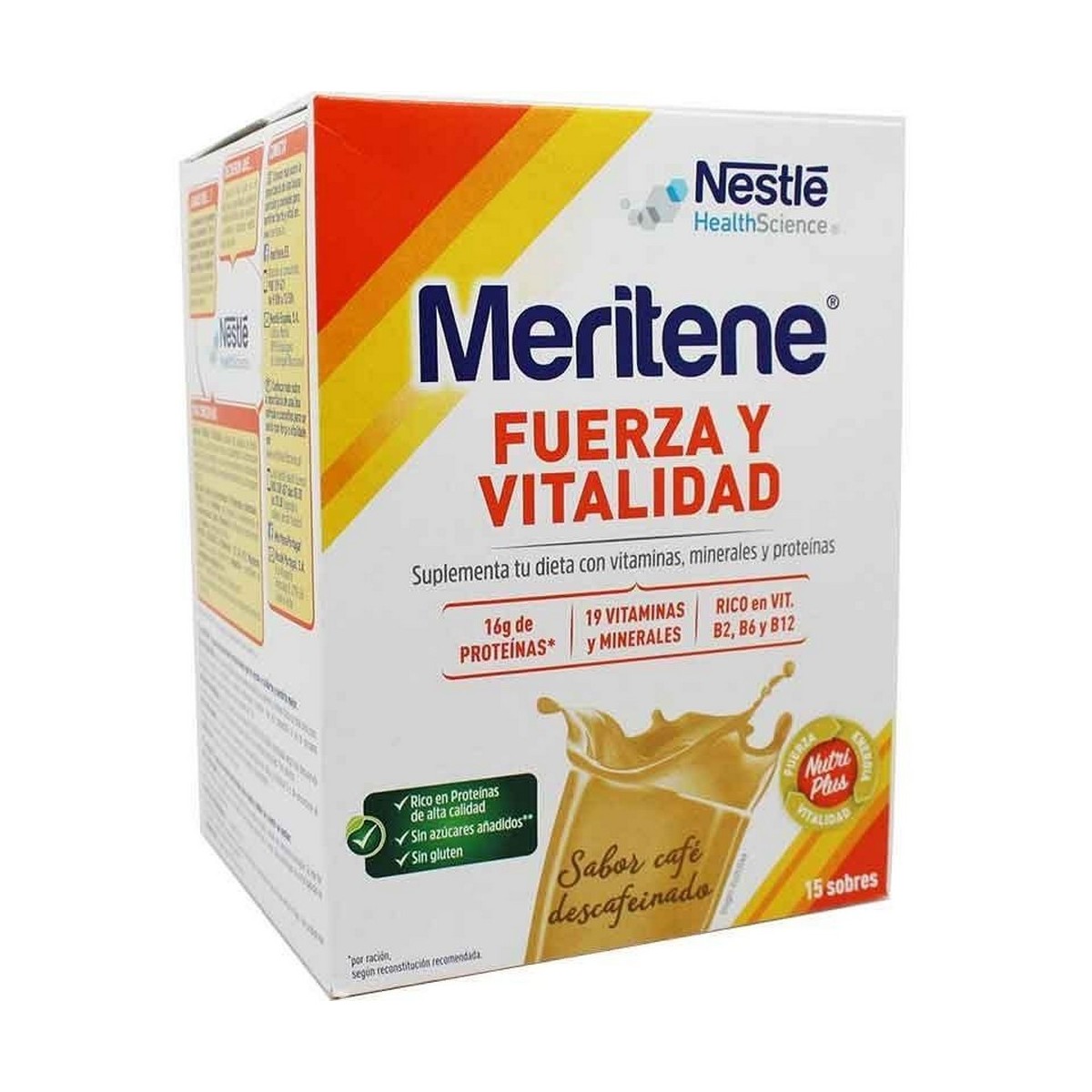 Meritene Fuerza y Vitalidad está diseñado por expertos de Nestlé Health Science. Es una deliciosa manera de suplementar la alimentación cuando ésta no es suficiente o en casos de requerimientos nutricionales aumentados (fatiga, debilidad, recuperación/rehabilitación, alto desgaste físico, etc.).