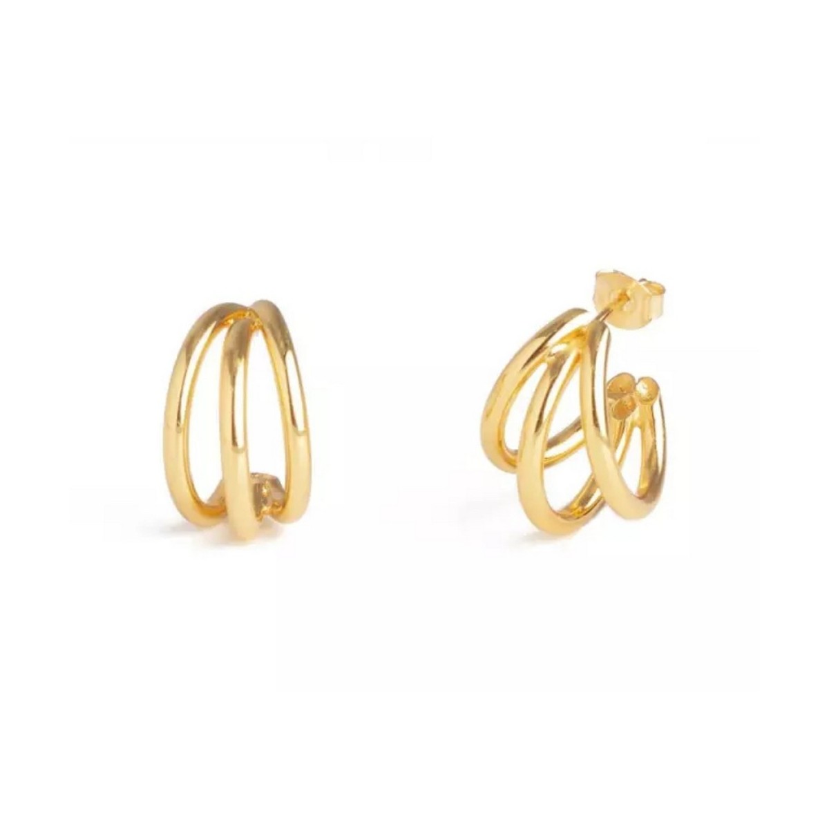 Triple aro de plata de ley 925 bañada en oro de 18 K.