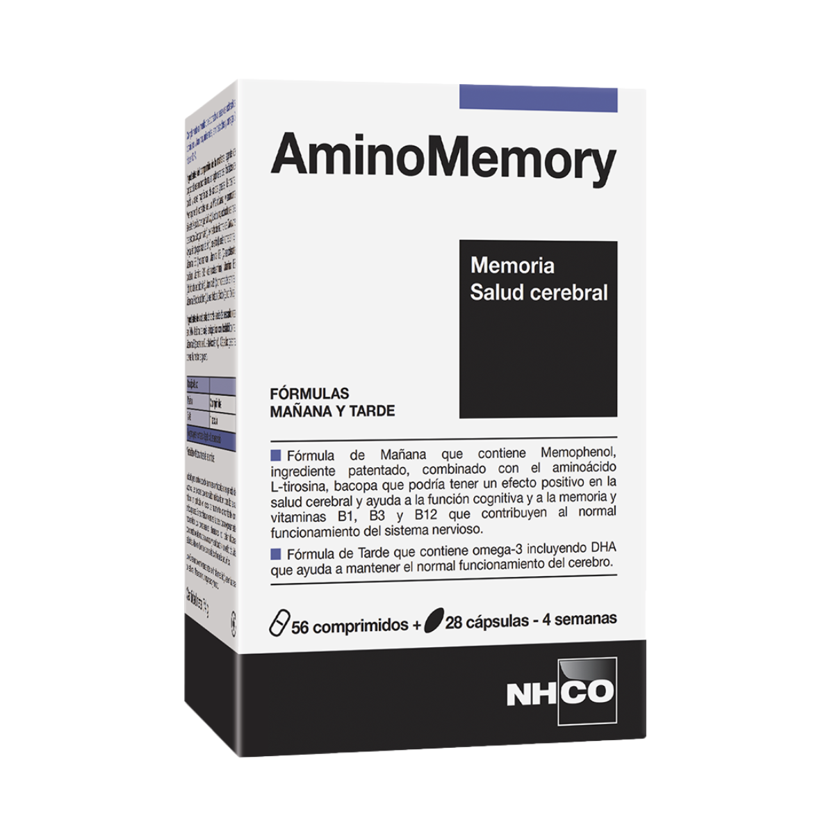 La fórmula de Mañana de AminoMemory está compuesta por 3 complejos para el mantenimiento de las funciones cognitivas normales (explicados a continuación). La fórmula de Tarde proporciona 250 mg de DHA*, que proviene de aceite de pescado, conocido por ayudar a mantener el normal funcionamiento del cerebro.