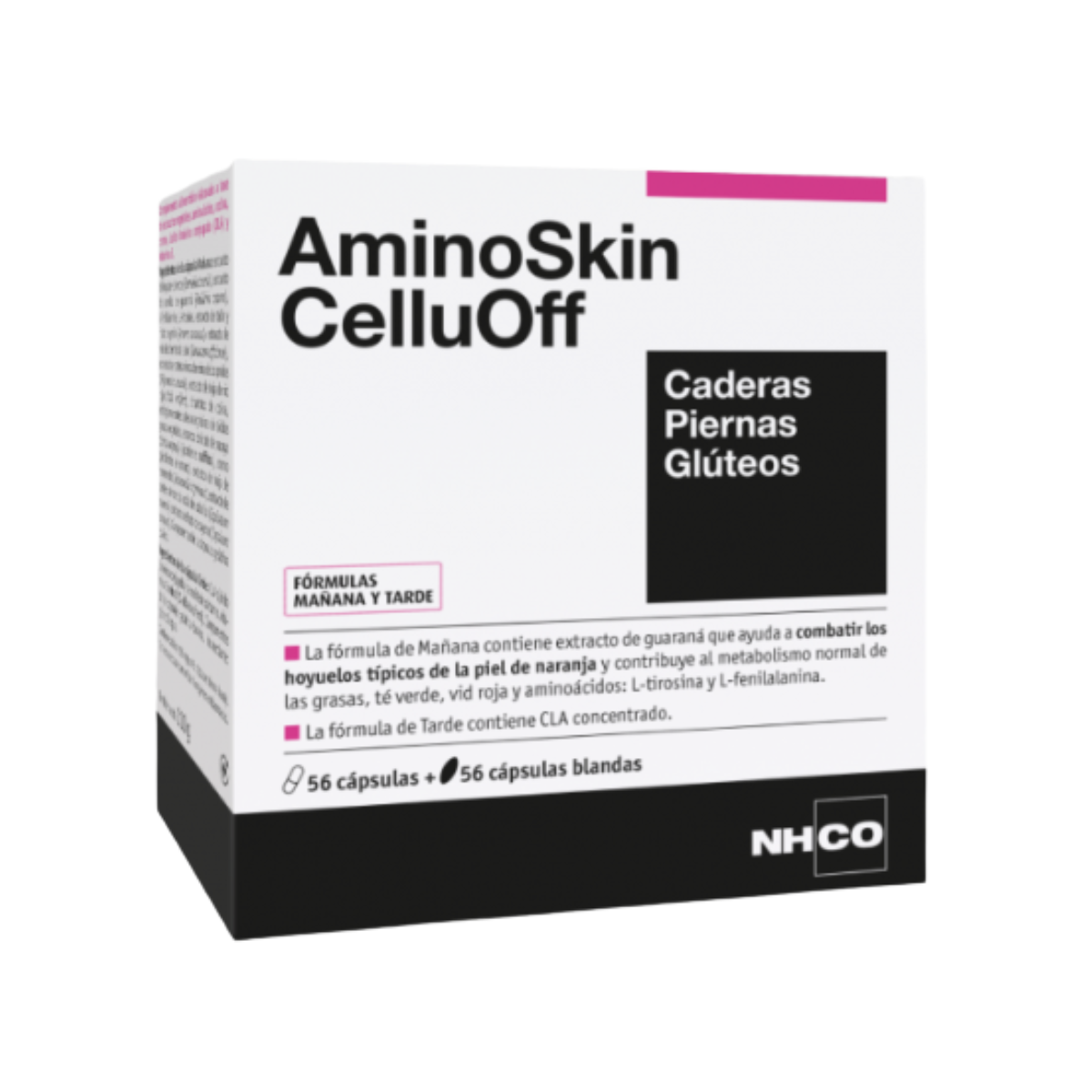 NHCO Nutrition® ha desarrollado AminoSkin CelluOff mañana y tarde para ayudar a estilizar la figura, especialmente en las caderas, los muslos o piernas y los glúteos.