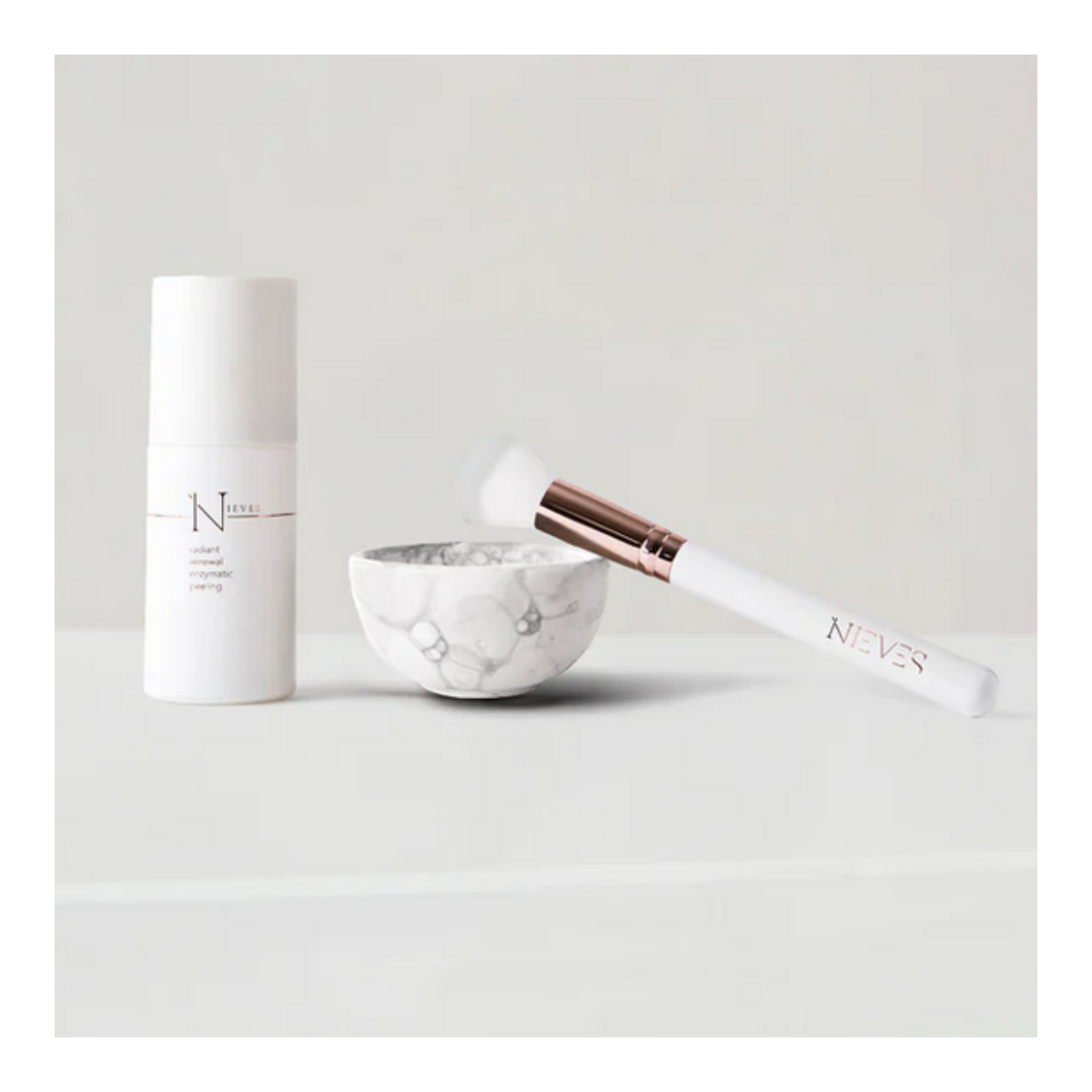 - CUENCO CERÁMICO Y BROCHA, para elevar el ritual de belleza y aplicar correctamente el producto en la piel.
