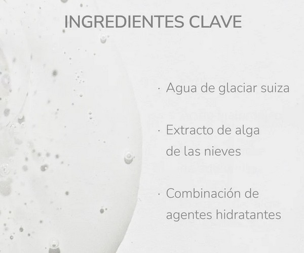 - AGUA DE GLACIAR SUIZA: Proporciona una hidratación profunda y de larga duración en la piel, mejora la suavidad y flexibilidad.