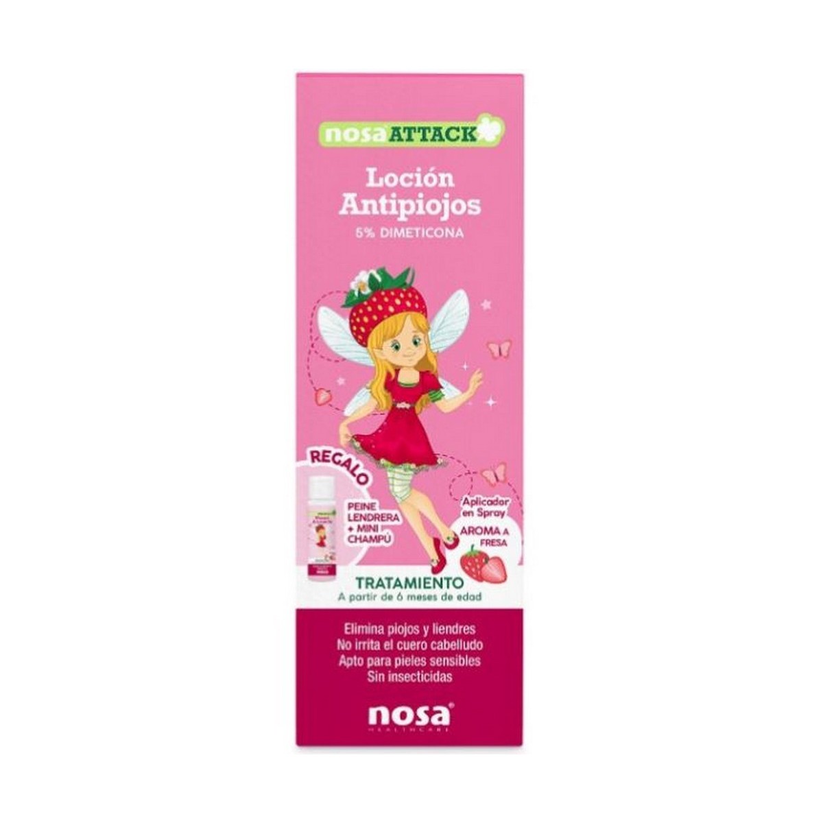NOSA LOCIÓN ANTIPIOJOS 100ML AROMA FRESA REGALO PEINE LENDRERA Y MINI CHAMPÚ