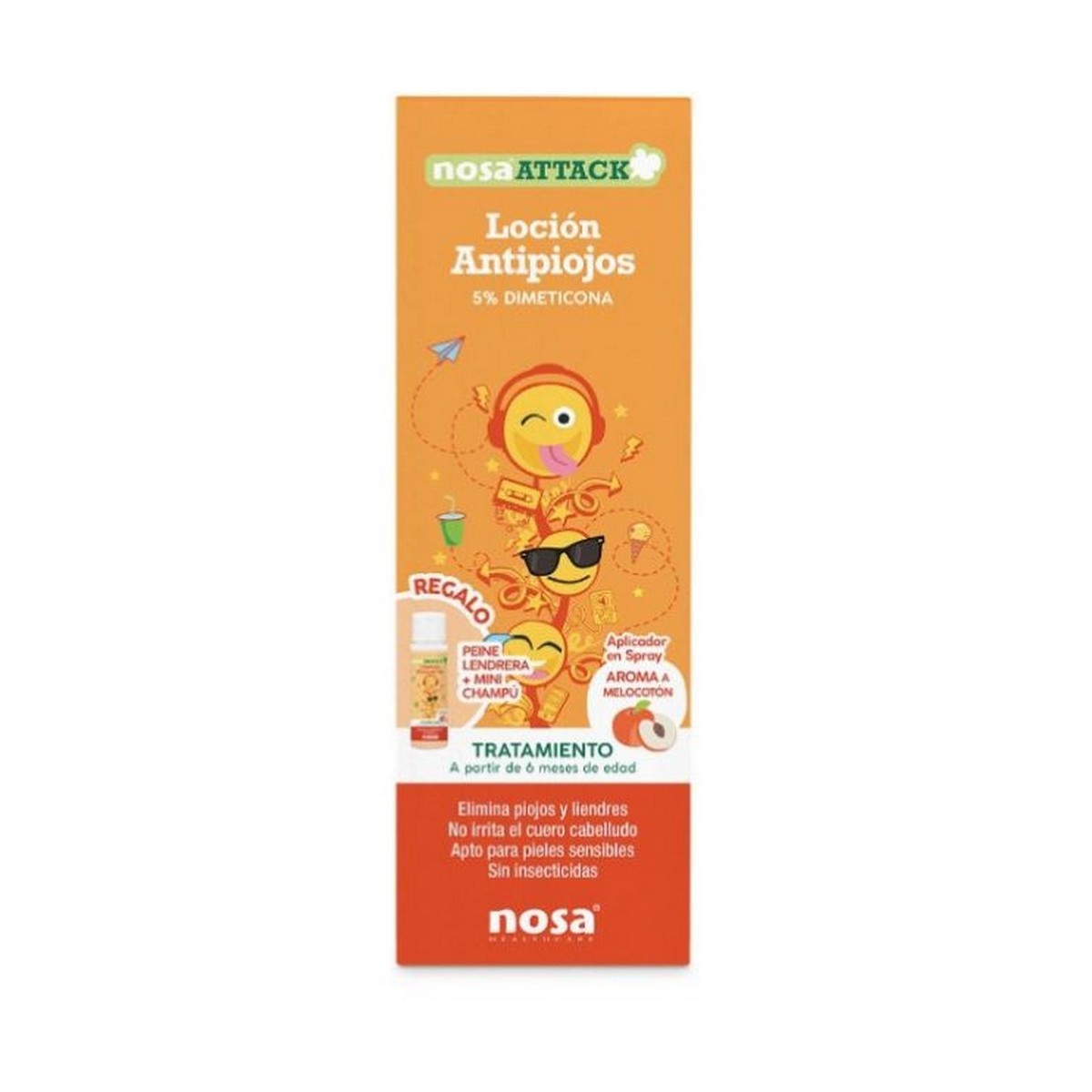 NOSA LOCIÓN ANTIPIOJOS 100ML AROMA MELOCOTÓN REGALO PEINE LENDRERA Y MINI CHAMPÚ