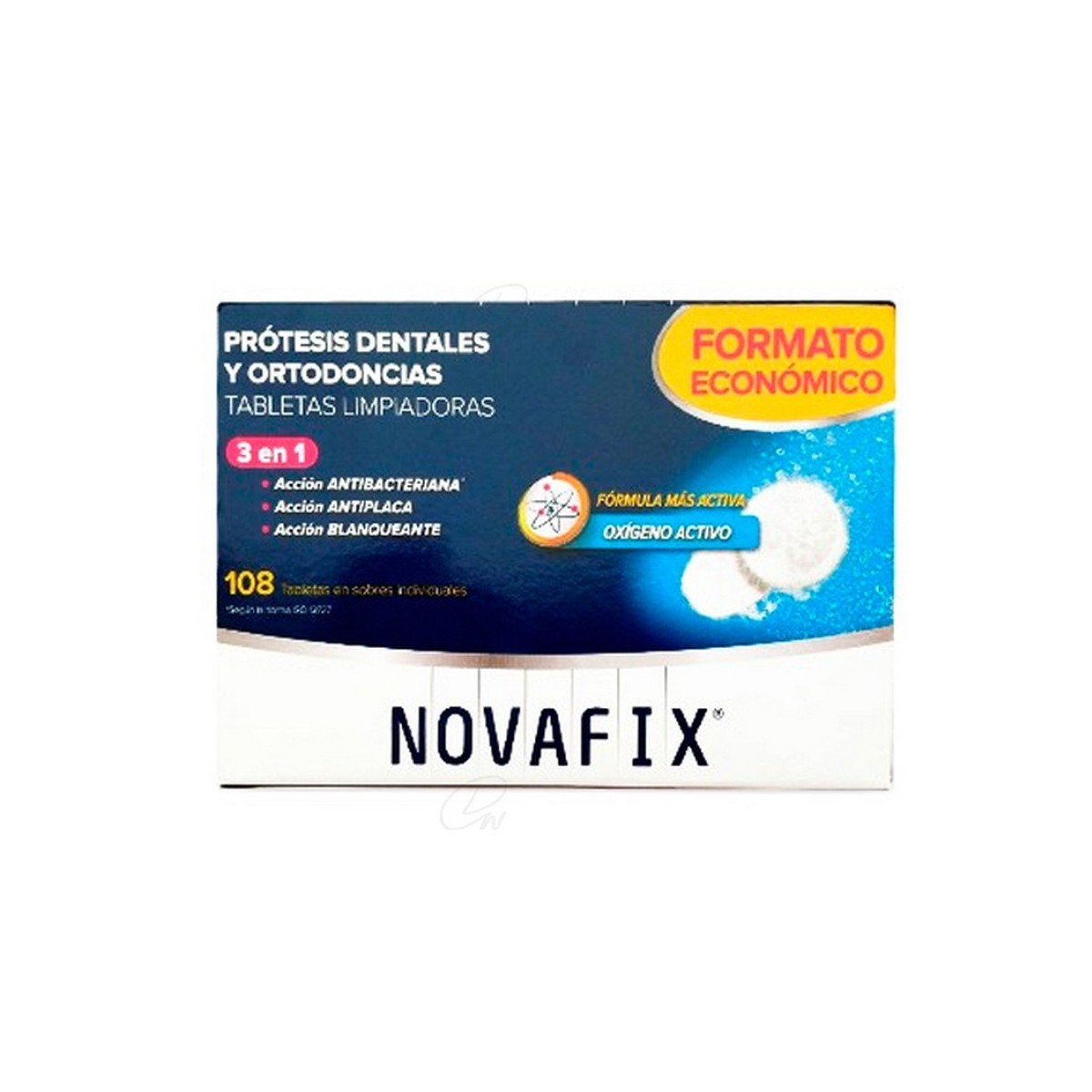 Las tabletas limpiadoras antibacterianas con su fórmula 3 en 1 libera oxígeno activo que previene la formación de sarro, elimina las manchas y la placa dental y proporciona una agradable sensación refrescante en la boca.