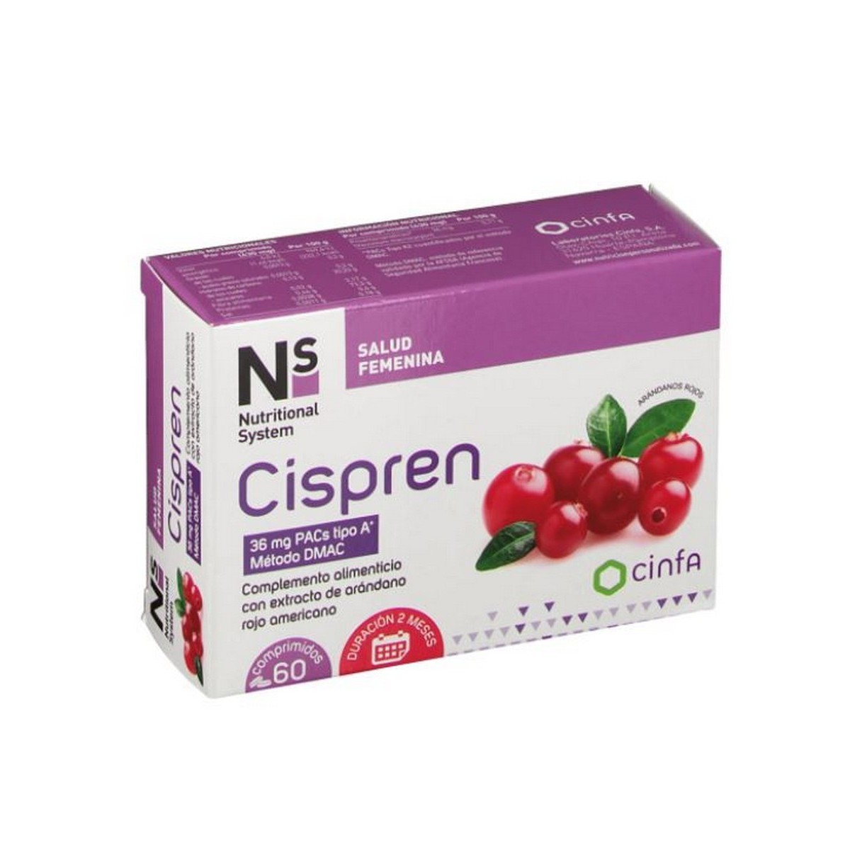 AGENTE DE CARGA: CELULOSA MICROCRISTALINA; EXTRACTO SECO CONCENTRADO DE ARÁNDANO ROJO AMERICANO (Vaccinium macrocarpon); GELIFICANTE: CARBOXIMETILCELULOSA; ESTABILIZANTES: HIDROXIPROPILMETILCELULOSA, ESTEARATO DE MAGNESIO; ANTIAGLOMERANTES: DIÓXIDO DE SILICIO, ÁCIDO ESTEÁRICO; AGENTE DE RECUBRIMIENTO: POLIETILENGLICOL; COLORANTES: DIÓXIDO DE TITANIO Y ÁCIDO CARMÍNICO.