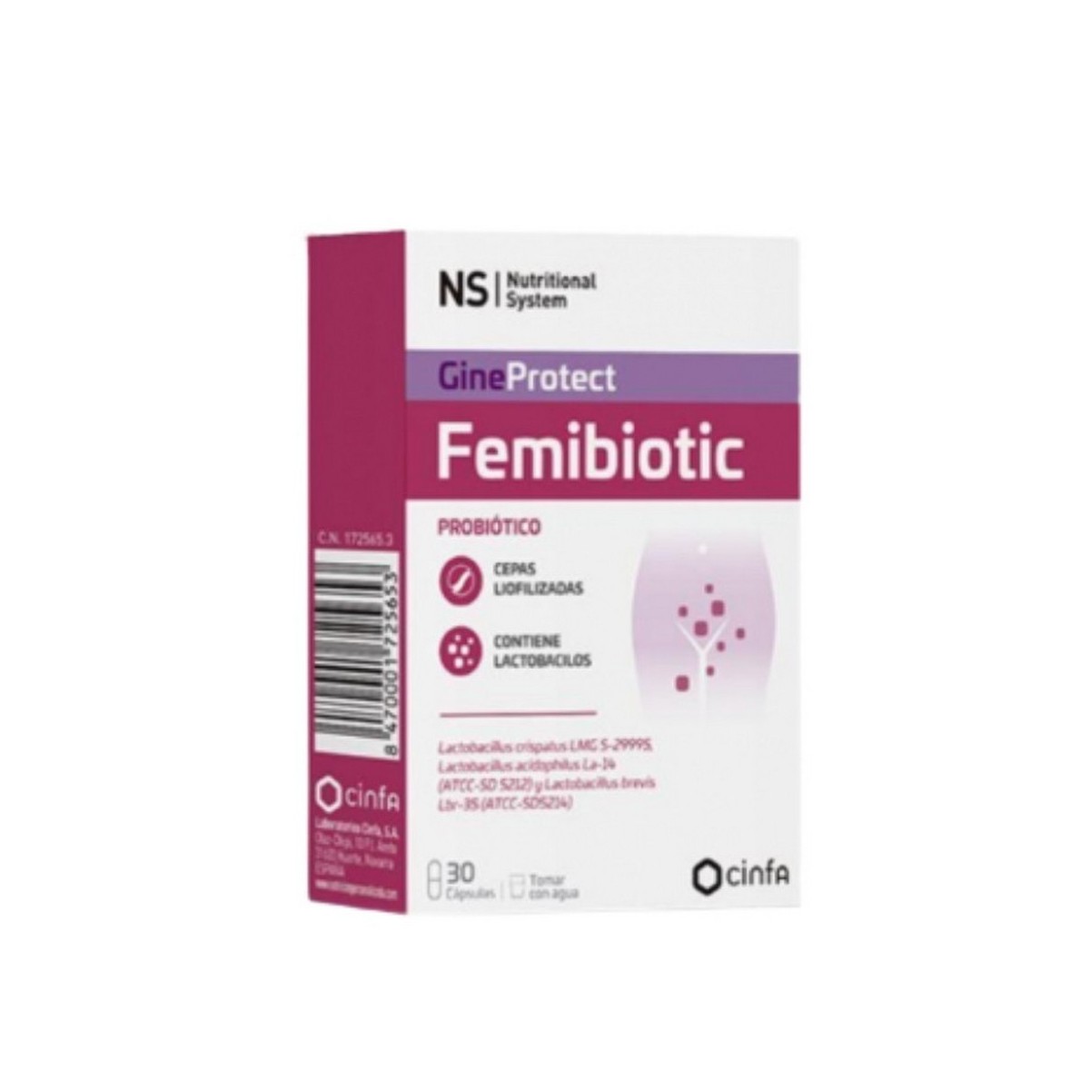 Una cápsula de Ns Femibiotic contiene al menos 5,4 billones de lactobacilos liofilizados: Lactobacillus crispatus LMG S-29995 (60%), Lactobacillus acidophilus La-14 ATCC-SD 5212 (20%), Lactobacillus brevis Lbr-35 ATCC-SD5214 (20%).