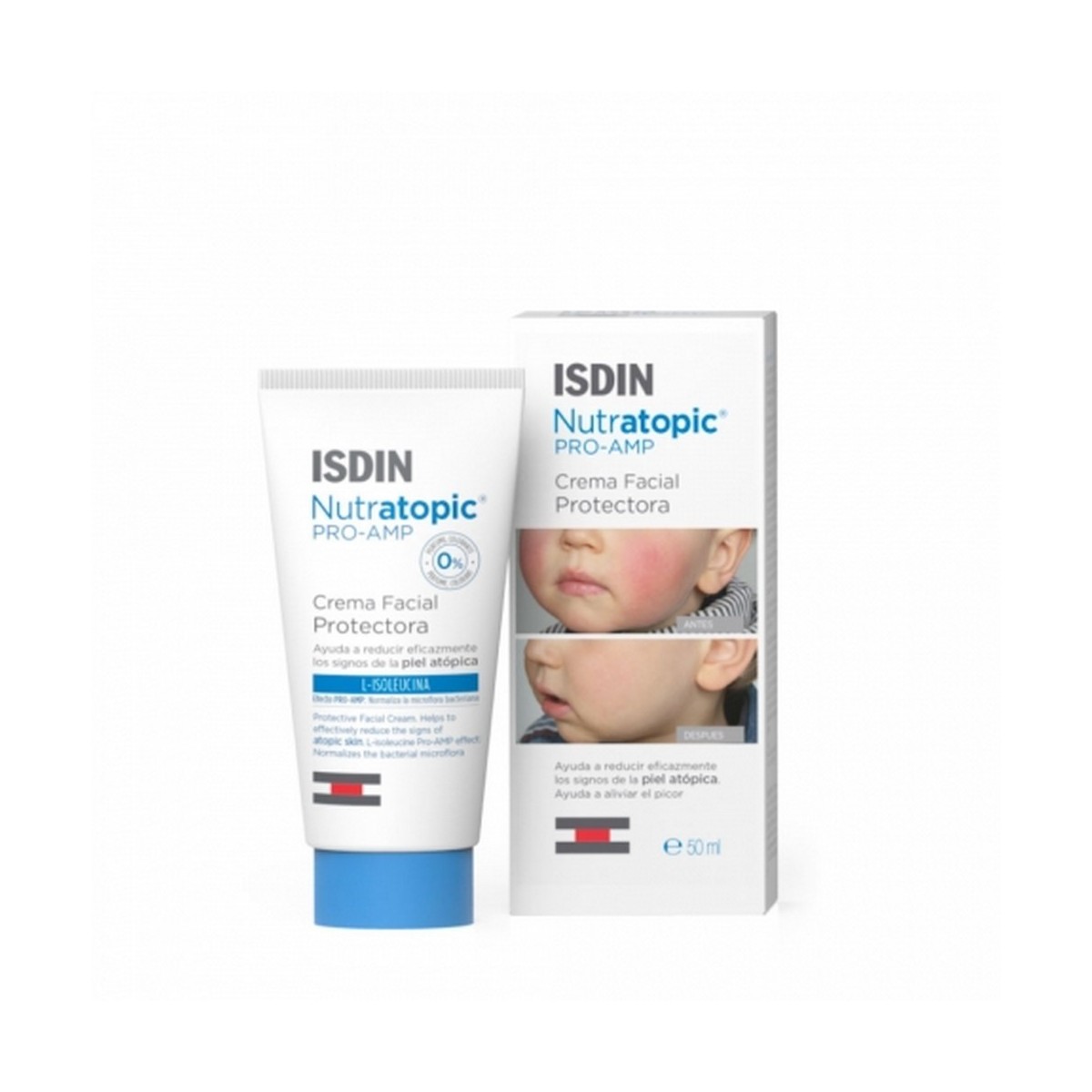 Prevención, cuidado y reducción de los principales síntomas visibles de la dermatitis atópica facial infantil: picor, sequedad, descamación, eritema y edema cutáneo.